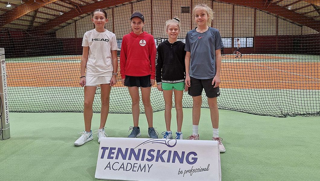 Halbfinal- und Finalspielerinnen U12 w (v.li.n.re.): Zoe Bleffert (TC Röttgen), Mirja Weingärtner (TC Wolfsberg-Pforzheim), Filippa Kleinholz (TC Ludwigsburg), Felipa Wegener (TC Doggenburg)