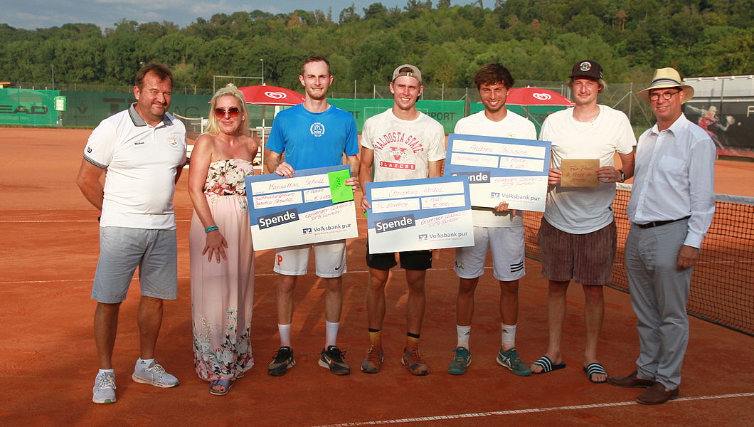 Maximilian Scholl vom TEC Waldau und Christian Wedel vom TV Reutlingen schenken sich nichts. Im ersten Satz wehrt Wedel zwei Satzbälle ab. Er gewinnt mit 7:6. Im zweiten Satz kontert Scholl bei eigenem Aufschlag drei Spielbälle und verliert dann doch noch durch einen Doppelfehler. Es steht 5:4 für Wedel, der im nächsten Spiel aber einen Matchball vergibt. Stattdessen holt sich Scholl den Satz mit 7:6. Es geht in den Match-Tiebreak, beide Spieler sind am Rande der Erschöpfung, doch Scholl hat offenbar noch mehr Reserven. Durch eine frühe Führung bricht er den Widerstand seines Gegners und nach drei Stunden und 20 Minuten reißt er die Arme in die Höhe. Der topgesetzte Spieler, die Nummer 75 der deutschen Rangliste, hat die Hitzeschlacht und das Turnier gewonnen. Das 6:7, 7:6, 10:6 war der grandiose Höhepunkt eines großen Tennis-Wochenendes in Enzberg.