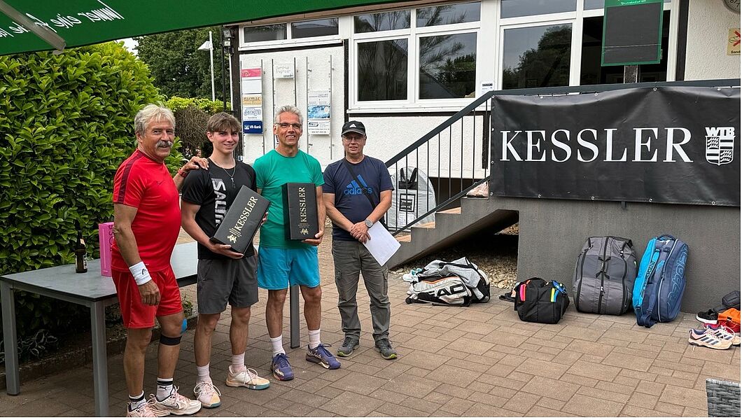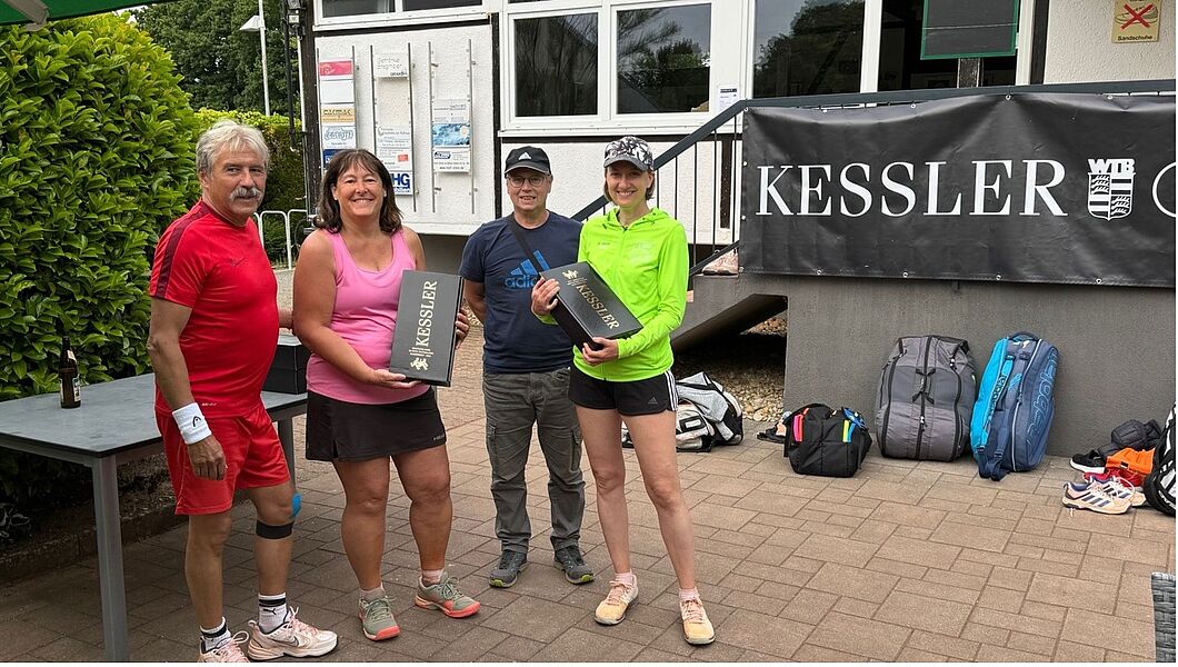 Bei den Damen holte sich das Kleinglattbacher Duo Anneli Fily und Rita Herre nach einem engen Match im Match-Tiebreak den Turniersieg gegen die Paarung Inga Müller und Christine Schmidt aus Tamm. Das mit langen und spektakulären Ballwechseln garnierte Spiel war spannend bis zum Schluss. Ditzingen sicherte sich mit Marion Funk und Lorella Vaccaro den dritten Platz – ein gelungener Einstand beim ersten Kessler-Cup-Auftritt. Bei den Herren wurde das Finale ebenfalls nach einem spannenden und engen Match im Match-Tiebreak entschieden. Hier setzte sich das Doppel aus Asperg bestehend aus Newcomer Sebastian Faissler und Oliver Langohr gegen die Paarung Uwe Soukup und Eckard Bleser (Sersheim/Pleidelsheim) durch. Den dritten Platz holten sich alte Bekannte aus Kleinglattbach – Klaus Lechner und Tomas Kerbelis. Die Lokalmatadoren aus Freiberg gingen bei der Pokalvergabe einmal mehr leer aus. Bestes Heim-Team: Alexander Heller und Herbert Beck auf Rang fünf bei den Herren. Dennoch war die Stimmung hervorragend – denn neben sportlichem Ehrgeiz stand vor allem der Spaß im Vordergrund.
