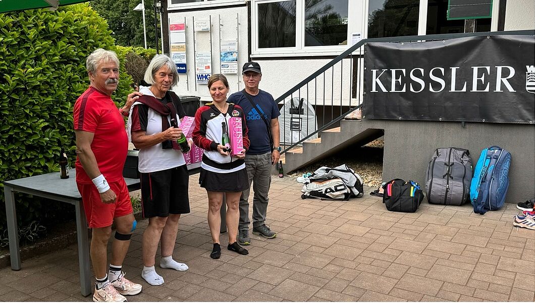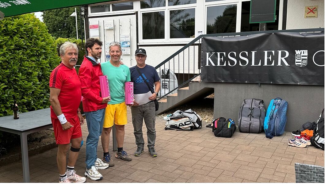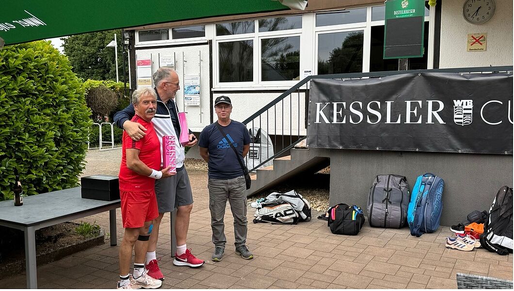 Die turniererfahrene TCF-Bewirtung bot über den ganzen Tag leckere und selbst zubereitete Speisen an. Von Kuchen, belegten Brötchen, Butterbrezeln über LKW bis zum selbstgemachten Kartoffelsalat mit Kalbsbratwürsten war für jeden etwas dabei, was auch der WTB-Turnierverantwortliche Uwe Soukup mit einem herzlichen Dank für die Helfer in seiner Abschlussrede zum Ausdruck brachte. Mit der Siegerehrung endete ein Turniertag voller Emotionen, spannender Matches und bester Stimmung. Der abschließende Dank des WTB-Verantwortlichen ging nochmals an den Turnierausrichter TC Freiberg und den Sponsor, die Sektkellerei Kessler. Für die vier besten Teams heißt es jetzt: Auf zum Masters im September! Und für alle anderen gilt: Nach dem Turnier ist vor dem Turnier – der nächste Kessler-Cup kommt bestimmt.