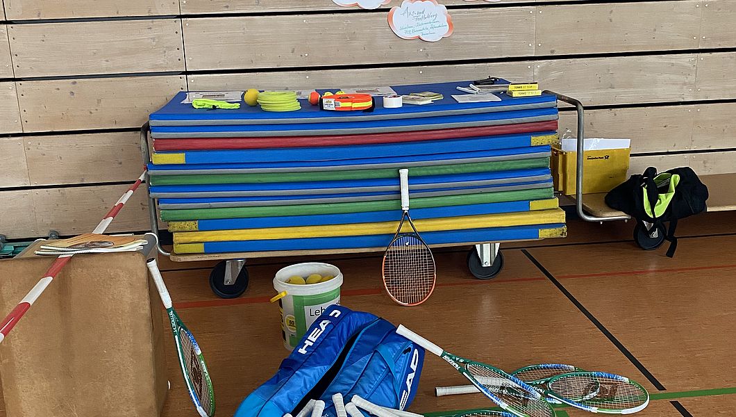 Viele Teilnehmende waren überrascht, mit was für einfachen Mitteln man Tennis in der Schule anbieten kann. Mit Markierungsstreifen wurden verschiedene Zielspielübungen absolviert, einige Übungen verlangten den Teilnehmenden - wie bereits beschrieben - einiges ab und sorgten für gute Laune. Die Lehrer*innen konnten die Flyer „Kindertennis Abzeichen“ direkt im Anschluss mitnehmen.