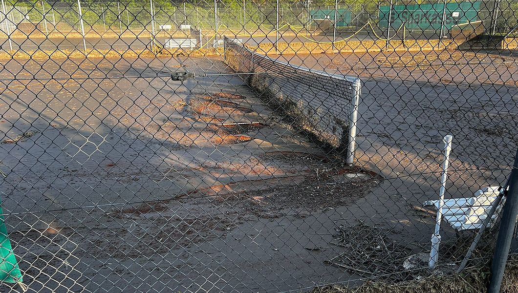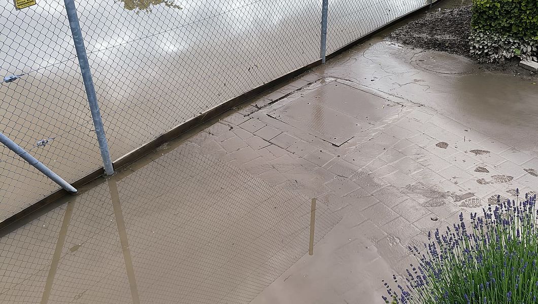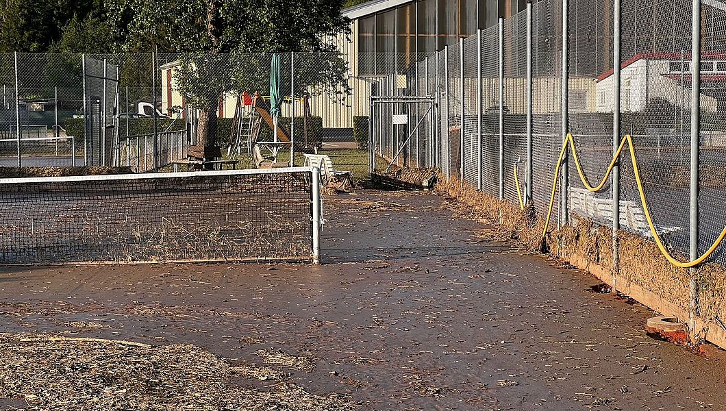 Die 4 weiteren Plätze sind nach aktuellem Stand "nur" mit Schlamm bedeckt. Das genaue Ausmaß wird sich zeigen, wenn der Schlamm angetrocknet ist.