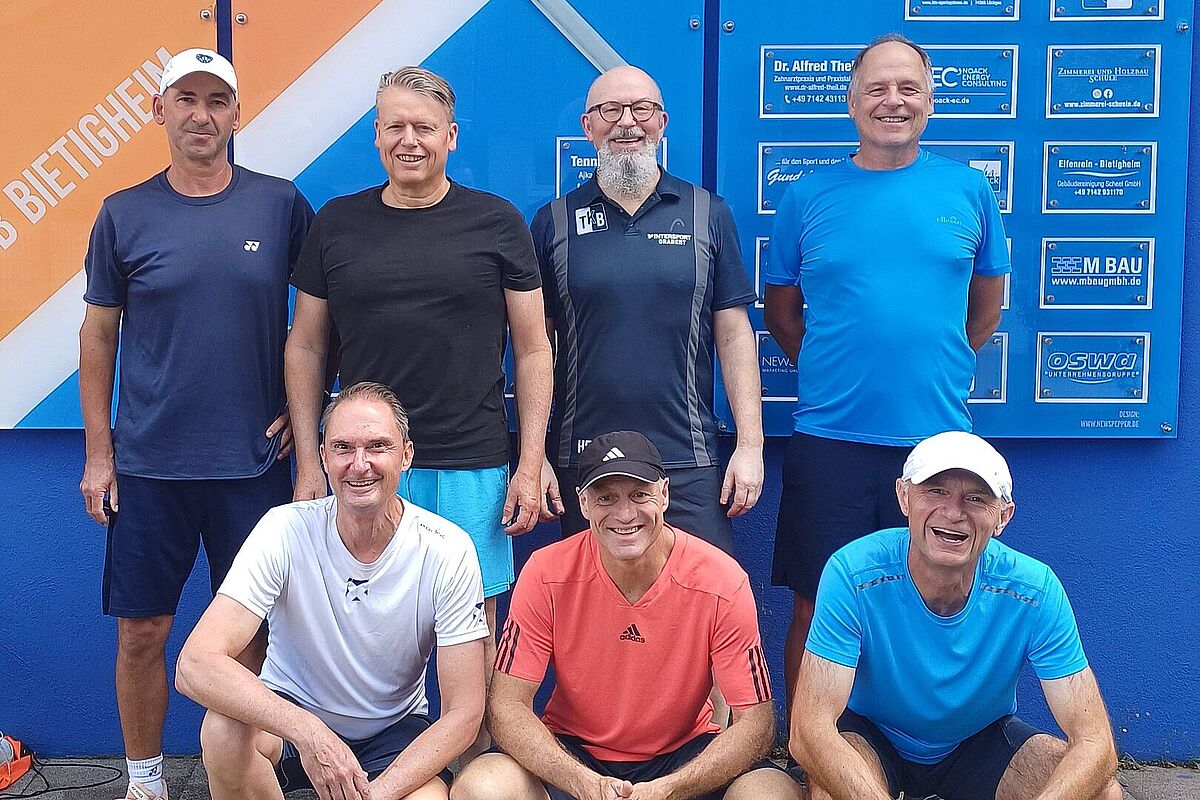 Mit einem denkbar knappen Vorsprung haben sich die Herren 40 der Tennisabteilung des TSV Künzelsau den Meistertitel in der Bezirksoberliga gesichert. Nach einem 6:3-Sieg am letzten Spieltag gegen den TK Bietigheim 2 stand die Mannschaft punktgleich mit der SPG TSG Hohenlohe an der Tabellenspitze – nur zwei mehr gewonnene Sätze gaben schließlich den Ausschlag. Unter der Leitung von Mannschaftsführer Thiemo Pfeiffer erreichte das Team in einer starken Siebenerliga eine Saisonbilanz von vier Siegen bei zwei Niederlagen. Der Titelgewinn kam überraschend, umso größer war die Freude beim Saisonabschluss, wo der Erfolg gebührend gefeiert wurde. Die Mannschaft bewies über die gesamte Spielzeit hinweg großen Teamgeist und Nervenstärke – und darf sich nun verdient über den Aufstieg in die Verbandsliga freuen.