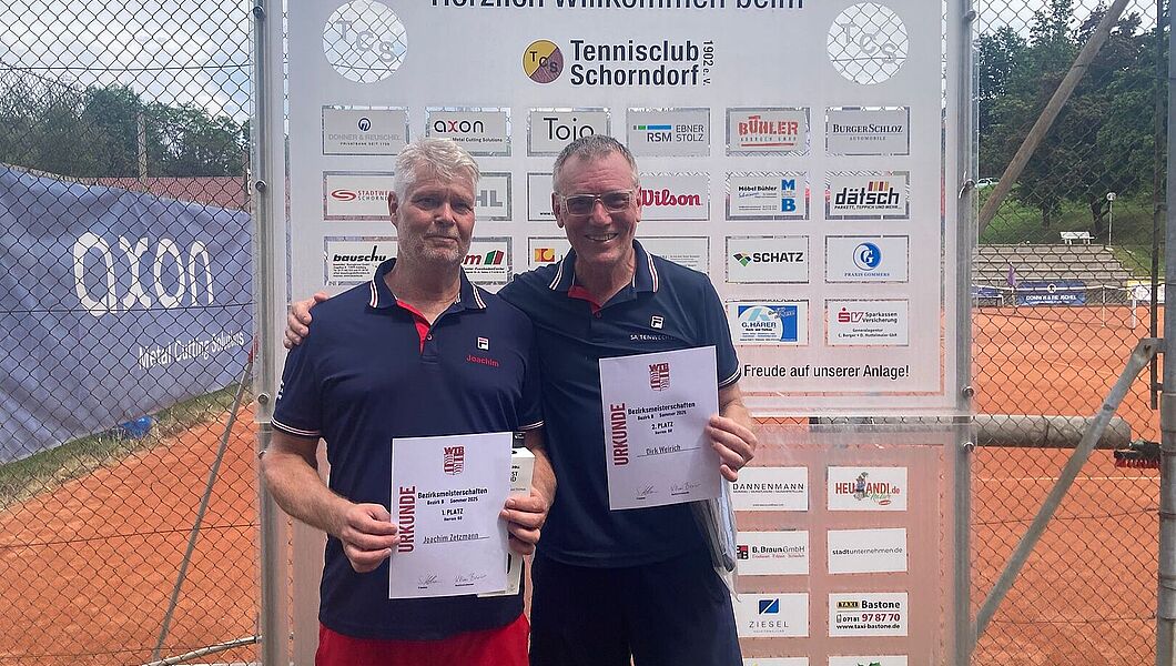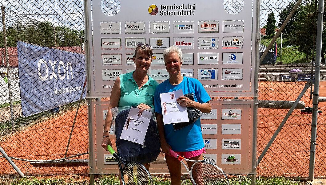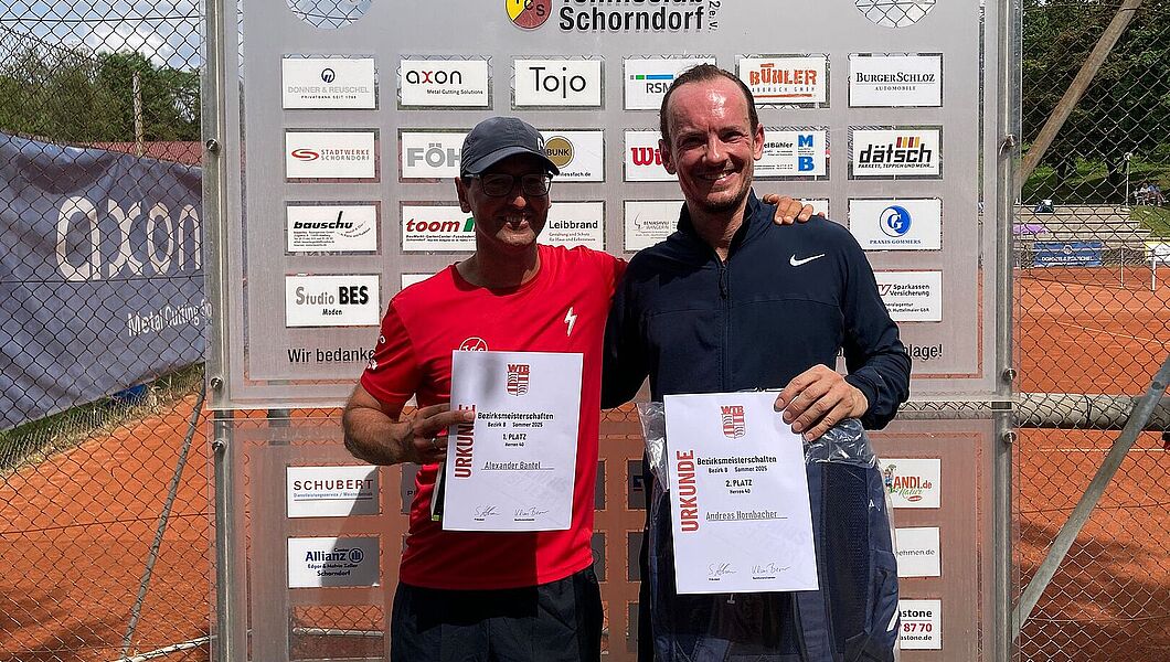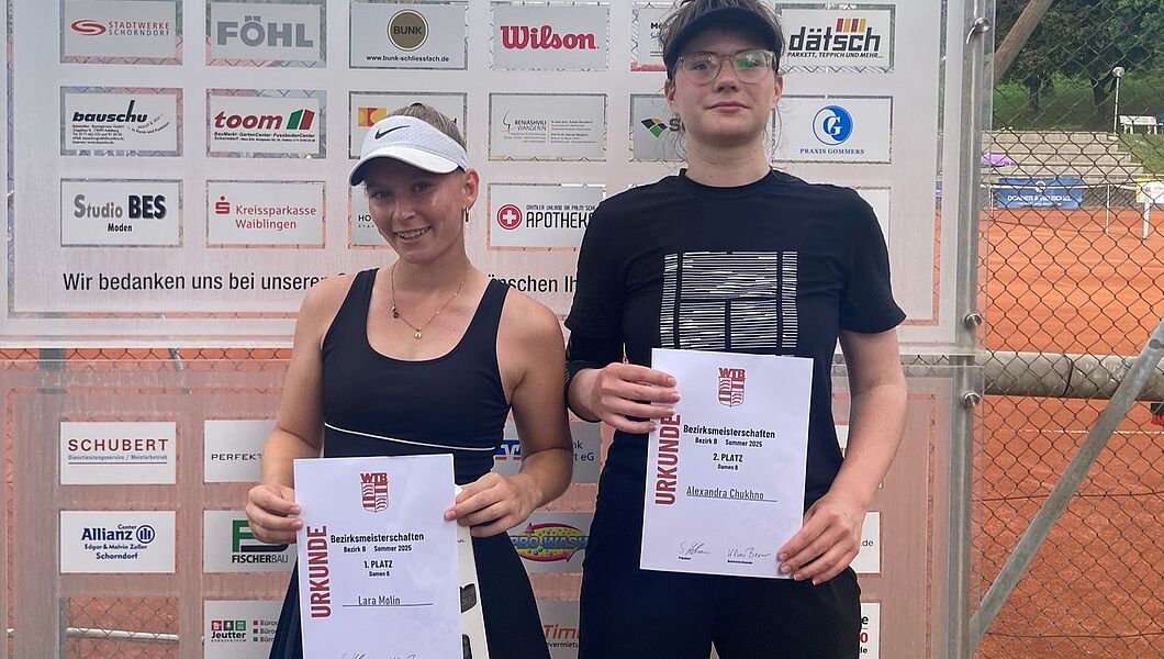 Sandplatztennis auf zum Teil sehr hohem Niveau boten die Spielerinnen und Spieler bei den diesjährigen Bezirksmeisterschaften, die auf der schönen Anlage des TC Schorndorf ausgetragen wurden. Sehr gut besetzt waren insbesondere die A-Wettbewerbe der Damen und Herren, wo es im Finale jeweils zu einem vereinsinternen Duell kam. Bei den Damen standen sich die Schorndorferinnen Marlene Sczech und Angelina Flachs gegenüber. Nach ausgeglichenem Beginn konnte Marlene immer mehr die Oberhand gewinnen und ihren Titel verteidigen. Bei den Herren traf der Waiblinger Noah Held auf seinen Vereinskameraden Alexander Lauinger, der im Halbfinale nach einem harten Kampf den Topgesetzten Diego Quispe-Kim vom TV Schwäbisch Gmünd bezwungen hatte. Nachdem Noah den ersten Satz klar gewonnen hatte, konnte sich Alexander im zweiten Satz steigern, sodass den Zuschauern ein tolles Match geboten wurde. Das bessere Ende hatte dann aber Noah, der damit verdient den Titel holte. Ebenfalls hochklassiges Tennis boten Alexander Bantel vom TC Schorndorf und Andreas Hornbacher von der TA SG Bettringen im Finale der Herren 40, das knapp an den Schorndorfer ging. Insgesamt waren die Wettbewerbe im Seniorenbereich aber eher wenig frequentiert, bei den Seniorinnen kam überhaupt nur ein Wettbewerb in der Altersklasse 60 zustande. Die Gründe hierfür sind nicht ganz klar, nachdem LK-Turniere auch im Seniorenbereich häufig sehr gut besucht sind.
