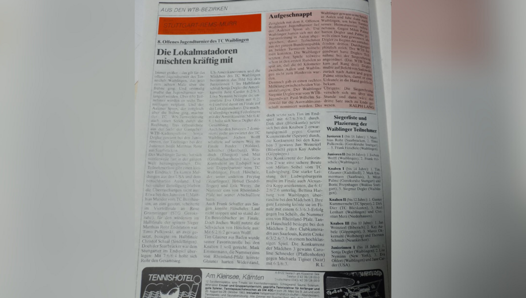 Auch der Leimener Boris Becker, dreimaliger Wimbledonsieger und Gewinner von sechs Grand Slams, schlug beim TCW auf – allerdings nur bei den Deutschen Jugendmeisterschaften 1981, wo er das Finale gegen Tore Meinecke verlor. Sein Konterfei findet sich auf den Planen ebenso wie das von Barbora Krejcikova, die ein Jahr für den TCW spielte, 2021 die French Open und 2024 Wimbledon gewann. Die Liste lässt sich locker mit erfolgreichen Teilnehmern beim Jugendturnier fortsetzen: Charly Steeb gewann den Davis Cup 1988 und 89, ebenso wie Patrik Kühnen, der noch einen Davis-Cup-Sieg 1993 folgen ließ. Anke Huber war an der Rems, Fed-Cup-Siegerin 1992, Finalistin im Masters Finale 1995, wo sie Steffi Graf unterlag.