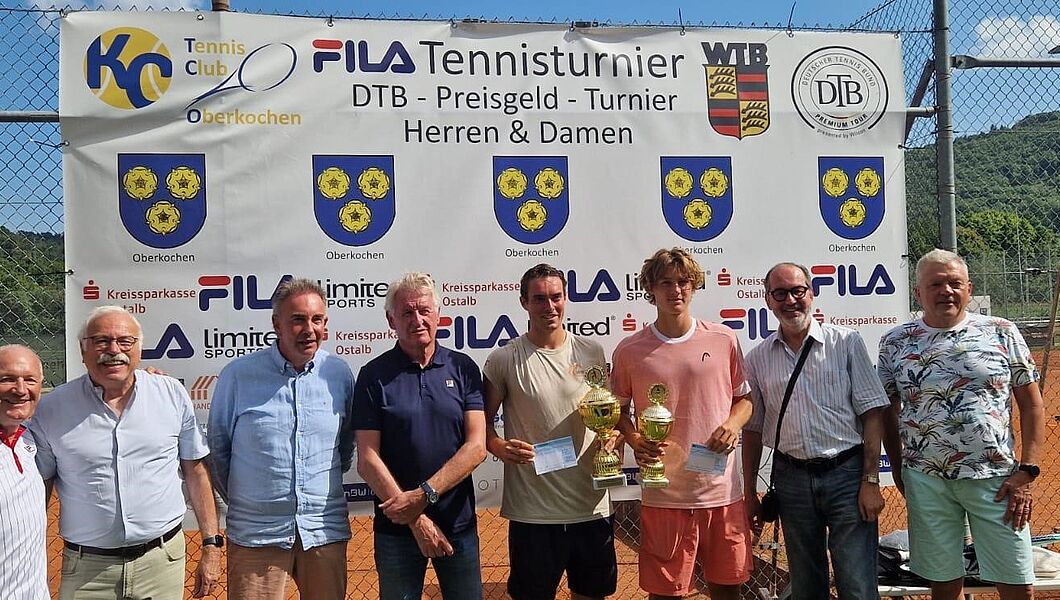 Das Finale war zunächst ausgeglichen bis zum Stand von 4:4 im ersten Satz. Beide spielten druckvolles Tennis, immer wieder mit eindrucksvollen Passierschlägen, aber auch garniert mit Stops und platzierten Lobs. Das Publikum belohnte immer wieder mit viel Beifall. Homberg, der 2021 als 17-Jähriger schon einmal in Oberkochen gewonnen hatte, holte sich den Satz mit 6:4. In Satz zwei ging der Nürnberger gegen den zwei Jahre jüngeren Funk schnell mit 3:0 in Führung. Der wurde zunehmend unzufriedener, obwohl ihm immer wieder gute Bälle und spektakuläre Punkte gelangen. Doch Homberg setzte sich über 3:1 schließlich 6:1 in Satz zwei durch, was deutlicher aussieht als es war, und holte sich damit den Sieg.