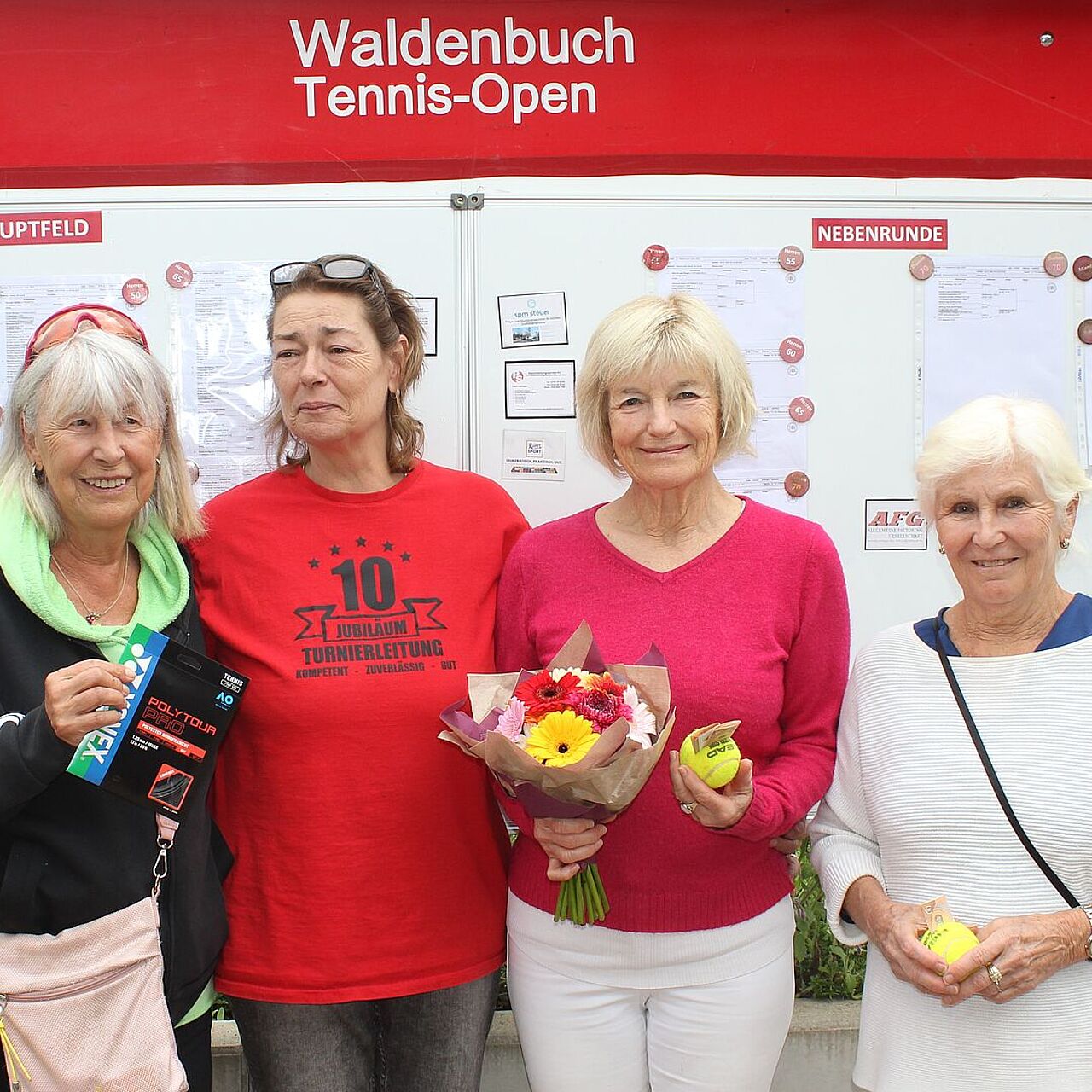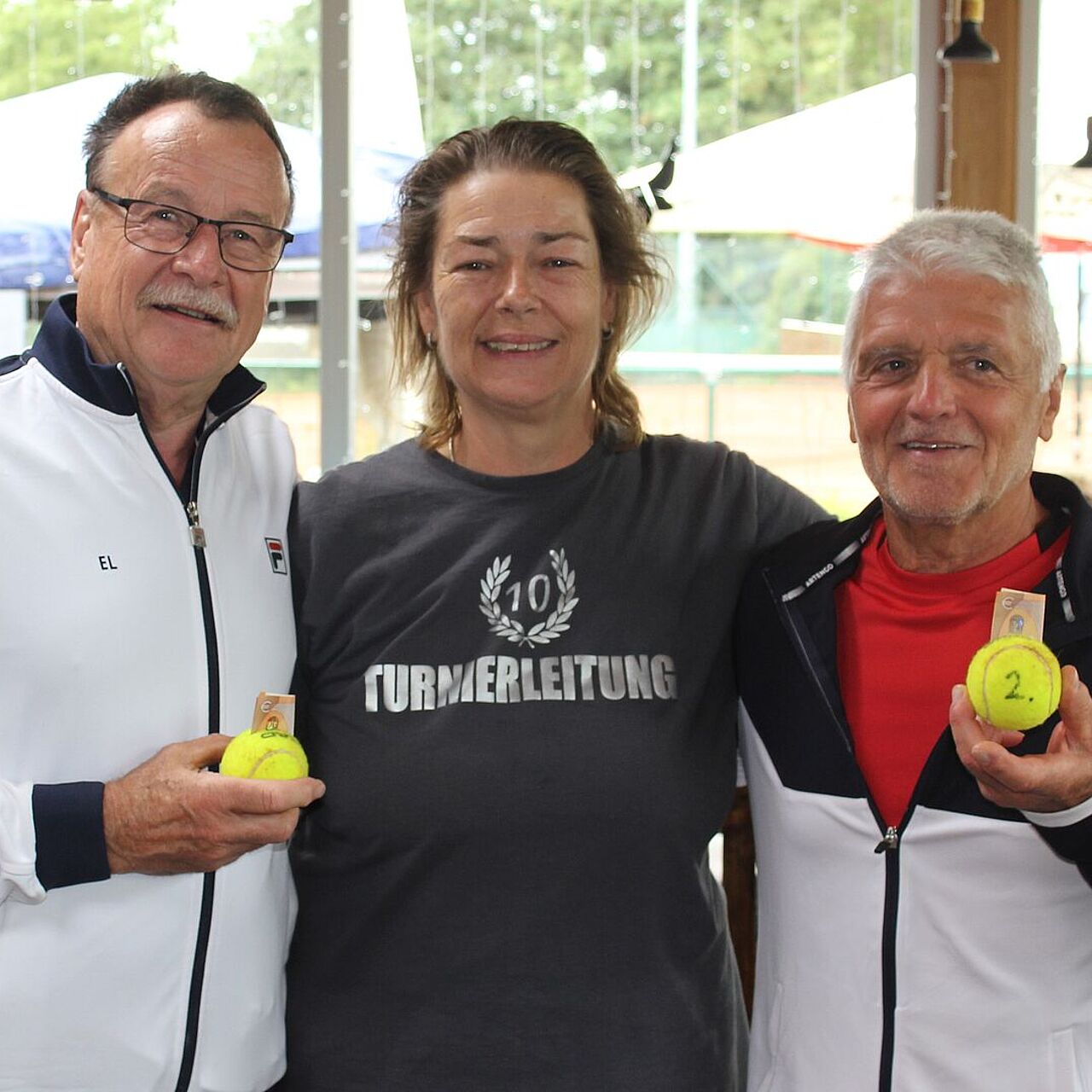 Mit den sportlichen Darbietungen der rund 160 Spielerinnen und Spieler in den Altersklassen von Ü40 bis Ü75 hatte die zwiespältige Bilanz nichts zu tun – mit den Witterungsturbulenzen in Form von teilweise heftigen Regengüssen in der Turnierwoche dafür umso mehr. „Das Wetter hat uns richtig Probleme bereitet“, bilanzierte Volker Deinaß, „aber letztlich haben wir dank der guten Kooperation mit den uns partnerschaftlich verbundenen Vereinen alles hingekriegt und konnten die Finalspiele planmäßig ansetzen.“ Zuvor konnten (und mussten) nicht nur mehrere Turnierspiele in die eigene Waldenbucher Halle verlegt werden, auch die Tennisanlagen in Schönaich und Bernhausen, in Weil im Schönbuch und der STG Geroksruhe in Stuttgart dienten zeitweise als Ausweichquartiere. Die Wetter-Kapriolen stellten nicht nur besondere Anforderungen an das Organisationsteam, sie verlangten auch den Turnierteilnehmenden ein hohes Maß an Flexibilität und Geduld ab. „Alle haben prima mitgezogen“ würdigte Deinaß das verständnisvolle Verhalten der Spielerinnen und Spieler. Das „Mitziehen“ galt bisweilen auch im Wortsinn: „Einige haben mitgeholfen, die Plätze nach dem Regen abzuziehen., damit sie schneller wieder bespielbar werden.“ Das Lob beruhte auf Gegenseitigkeit: Bei der Siegerehrung bedankte sich Sabine Wittenmayer im Namen der Turnierteilnehmenden für die Arbeit des Organisationsteams.