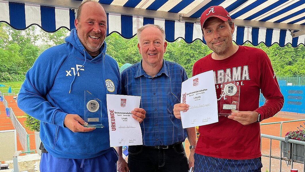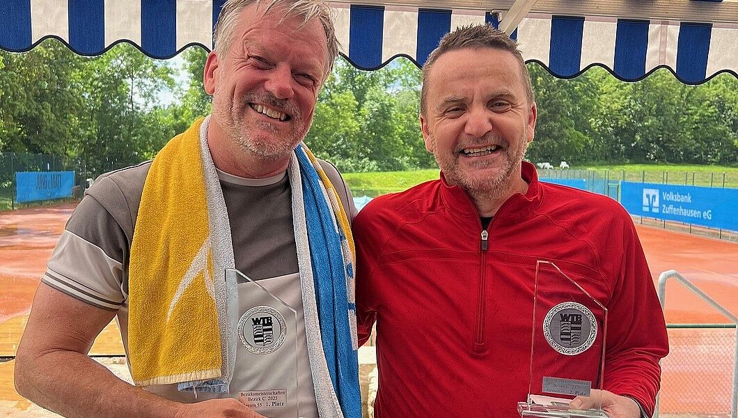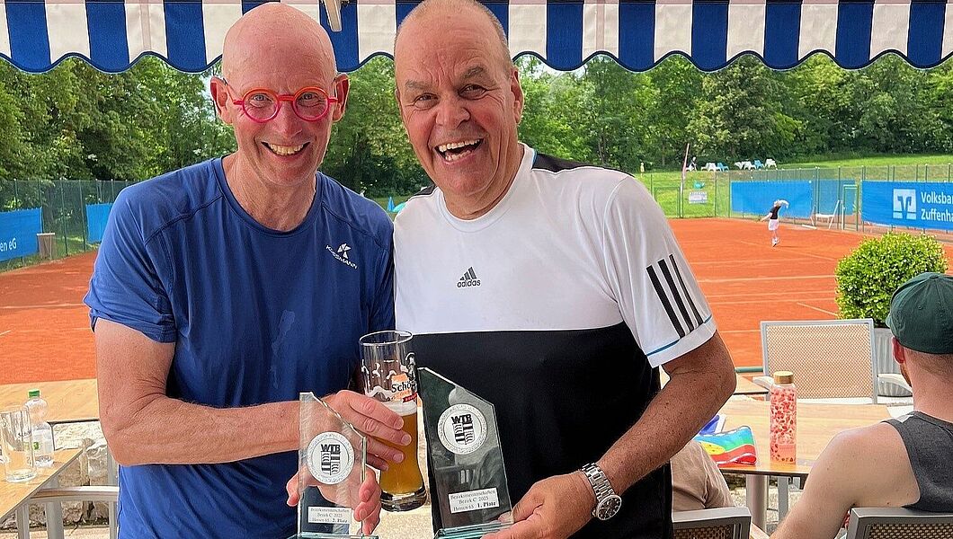 Aus Sicht des gastgebenden Vereins erfreulich war ganz sicher der Doppelerfolg von Jessica und Stefan Breitinger (TC BW Zuffenhausen) als Sieger der Damen 50, bzw. Herren 50. Mit Arpad Horvath stand ein weiterer Lokalmatador im Finale Herren 60. Er unterlag aber Knut Bruens (TA SV Sillenbuch), der nach 2019 seinen zweiten Bezirksmeistertitel holte (6:2, 6:4). Sein Halbfinale gegen Thomas Volkmann (TC Herrenberg) hatte Bruens zuvor als „das heimliche Finale“ bezeichnet gehabt, waren sich beide doch schon 2019 bei den Herren 55 im Endspiel gegenübergestanden. Umkämpft war’s auch diesmal wieder (6:3, 3:6, 10:4). Florian Schlegel (TC Bad Wildbad) wurde bei den Herren 40 als Titelverteidiger seiner Favoritenrolle gerecht, bei den Herren 55 entpuppte sich Jörg Unseld (TA KV Untertürkheim) als ungesetzter Favoritenschreck. Seine drei Matches absolvierte er ohne Satzverlust. Aufgrund der geringen Beteiligung waren vier Wettbewerbe in Gruppenspielen ausgelost worden. Hier holten sich Marion Kelsch (TA TSV Jahn Büsnau, Damen 60), wie erwähnt Stefan Breitinger (TC BW Zuffenhausen, Herren 50) sowie Frank Abel (TA NLV Vaihingen, Herren 65) und Michael Zauner (TC Birkenfeld, Herren 70) die Titel.