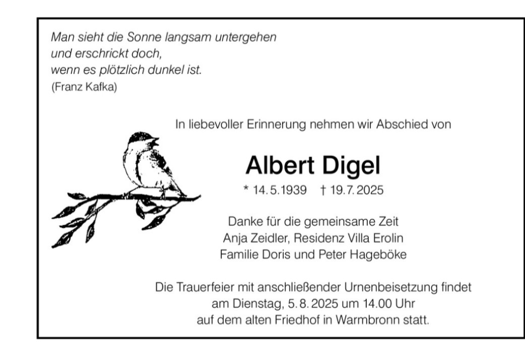 Trauer um Albert Digel