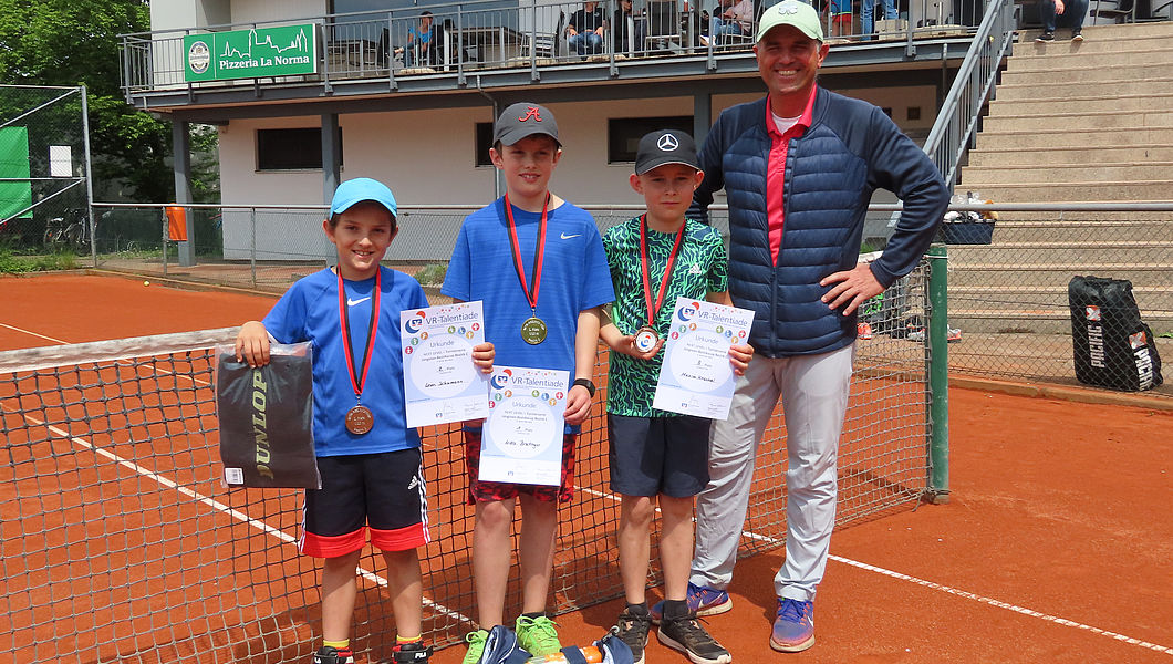 „In den gut besetzten Feldern, in denen je nach Altersklasse mit druckreduzierten Bällen mit rotem, orangenem und grünem Punkt gespielt wurde, konnte ich vielseitige Spielertypen beobachten. Angriffslustige Spielzüge waren zwar eher Seltenheit, dafür aber sorgten die Laufbereitschaft der Kinder und ihre Verteidigungsstrategien für spannende Matches. Gut gefallen hat mir, dass während der Pausen auch Eltern oder Großeltern zu Schlägern griffen und mit ihren Kindern Bälle schlugen. So wurde an diesem wunderschönen sonnigen Muttertag nicht nur Wettkampftennis gespielt, sondern durch die Brücke der drei Generationen auch gezeigt, dass Alt mit Jung auf dem Tennisplatz sehr gut harmoniert“, berichtet Genadi Mihaylov. Über erste Plätze freuen durften sich hier Sophie Lehmann (TA SV Böblingen, U11), Niels und Tanja Breitinger (TC BW Zuffenhausen, beide U10), Jonas Fortun (TC Degerloch, U9), Juna Boekeler (TEC Waldau, U9) sowie von der TA VfL Sindelfingen Nikita Koschel und Linda Rendel bei den U8.