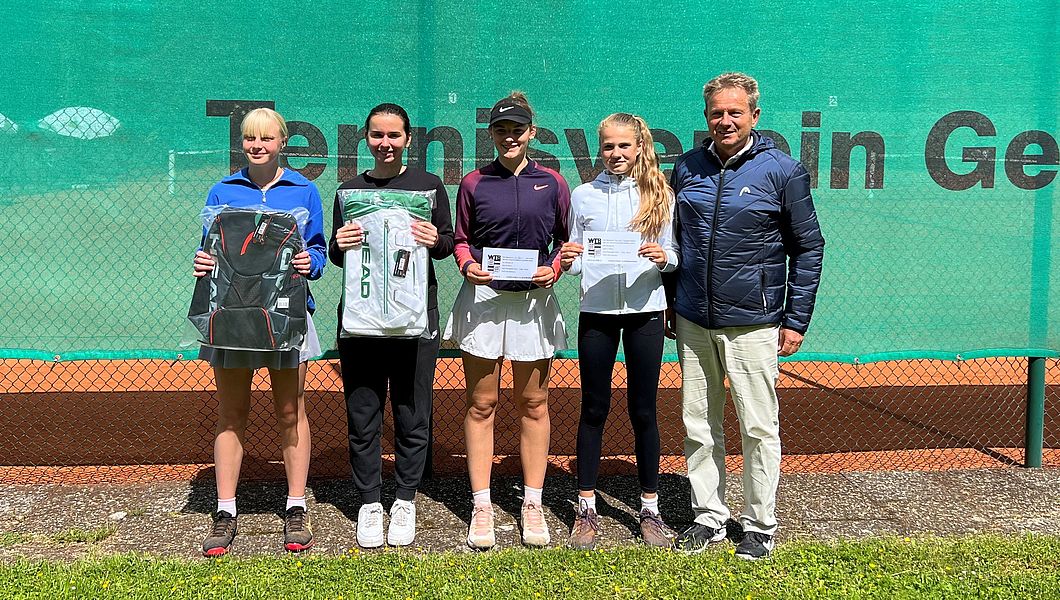 Die Finalistinnen der Damen A und B: Polina Chekotylo, Yvonne-Vivienne Liptak, Lilli Baur, Mariella Thamm sowie Dieter Kindschuh (v.li.)