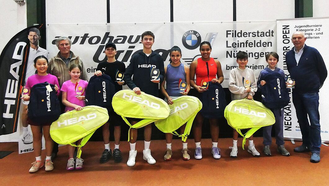 So zogen Turnierleiter Horst-Dieter Saller und seine Mitstreiter, bis auf wenige Ausnahmen, ein positives Turnierfazit. „Bei der weiblichen U 16-Disziplin musste ich eine überehrgeizige Spielerin in ihre Grenzen verweisen“, berichtet Saller, der großen Wert auf Fairness im Sport legt. Der Großteil der insgesamt über 150 Partien verlief aber sportlich anständig. Die weiteste Anreise mit rund sechs Stunden hatte ein Teilnehmer aus Leipzig. Der längste Turniertag war der Freitag, wo die U 16 Matches erst kurz vor Mitternacht endeten. „Mein besonderer Dank geht an Hallenbetreiber Joachim Glatzel und an Oberschiedsrichter Jörg Heinkele“, blickt Saller bereits mit einem Auge schon jetzt wieder auf den Herbst, wenn die nächste Auflage der Neckar-Filder Junior Open Ende Oktober in Neckartenzlingen stattfinden wird. Bei der Siegerehrung konnten jeweils die ersten drei Sieger: innen Sachpreise und Glaspokale, unterstützt durch die Sponsoren HEAD und BMW Autohaus Briem, in Empfang nehmen.