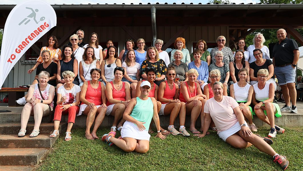 Bei herrlichen Temperaturen und idealem Tenniswetter durfte Turnierleiter Achim Bader am Samstagmorgen sowohl altbekannte Gesichter, die bereits teilweise zum fünften Mal dabei waren, aber auch neue Teilnehmerinnen willkommen heißen und die ersten Gruppenspiele konnten pünktlich beginnen. Aufgrund der kurzfristigen Absagen wurde bei den Damen Unter50 in einer 3er- und einer 4er-Gruppe und bei den Damen Über50 in zwei 3er- und zwei 4er-Gruppen gespielt. Es entwickelten sich bereits in den Gruppenspielen interessante und spannende Matches, wobei auch mehrmals der Match-Tie-Break entscheiden musste und abends standen die Platzierungen in den Gruppen und somit auch die Teilnehmerinnen der Viertelfinalspiele bei Ü50 bzw. Halbfinalspiele bei U50 fest. Bevor diese aber am Sonntag in Angriff genommen wurden, stand am Samstagabend zuerst noch die obligatorische Players Night auf dem Programm. Auf der gemütlichen Terrasse des TC Grafenberg mit Barbetrieb wurde noch bis nach Mitternacht ausgiebig getanzt und gefeiert.