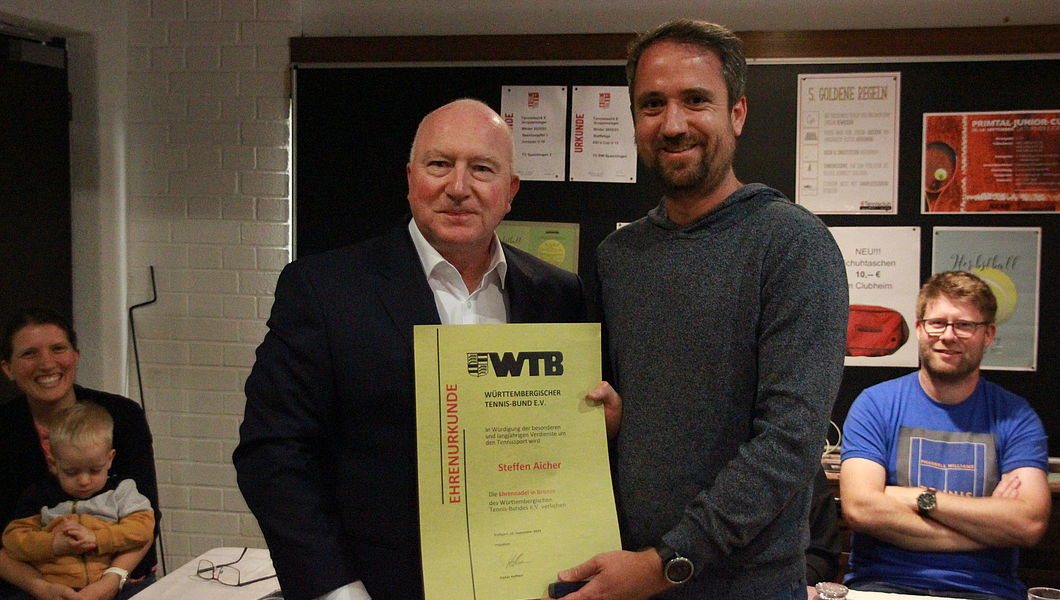 Die WTB-Ehrennadel "Bronze-versilbert" erhielt Michael Greidenweis. Er war acht Jahre lang Breitensportwart, ehe er im Jahr 2015 das Amt des 2. Vorsitzenden übernahm.