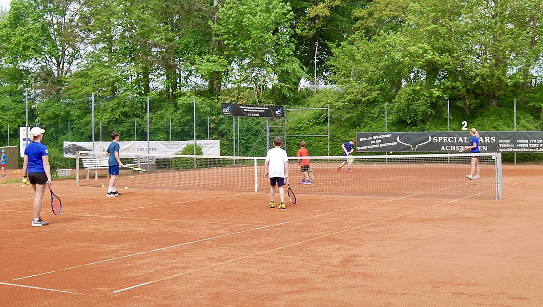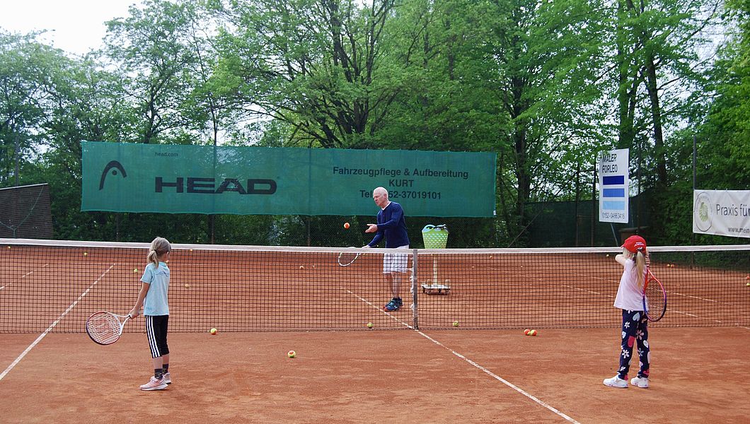 Koordinationsleiter, bunte Markierungshütchen und viele Bälle: Die Trainerinnen des WTB hatten für Kinder jeder Altersklasse und Leistungsstufe nicht nur passendes Material, sondern auch Übungen parat, die Spaß machen. Parallel dazu wurden die Kleinsten von Trainer Hartwig Schromm betreut, der ihnen mit viel Geduld den Umgang mit dem Tennisschläger näherbrachte. Auf der Anlage war auch abseits der Tennisplätze einiges geboten. Die Kinder, die nicht Tennis spielen wollten oder denen das Training noch nicht genug war, tummelten sich in der Hüpfburg. Mit Grillgut und Pommes stillten die Birkenharder den Hunger der Gäste – und für den süßen Zahn gab es Kuchen oder frisches Eis von „Tanis rollender Eiskugel.“ Selbst nach dem offiziellen Programm hatten es die Besucher nicht eilig nach Hause zu gehen, sodass die Anlage bis zum frühen Abend bestens besucht war. „Es war ein toller Tag und ich hoffe, dass wir viele Gäste für den Tennissport begeistern konnten und bald wieder sehen“, so Stiefel.