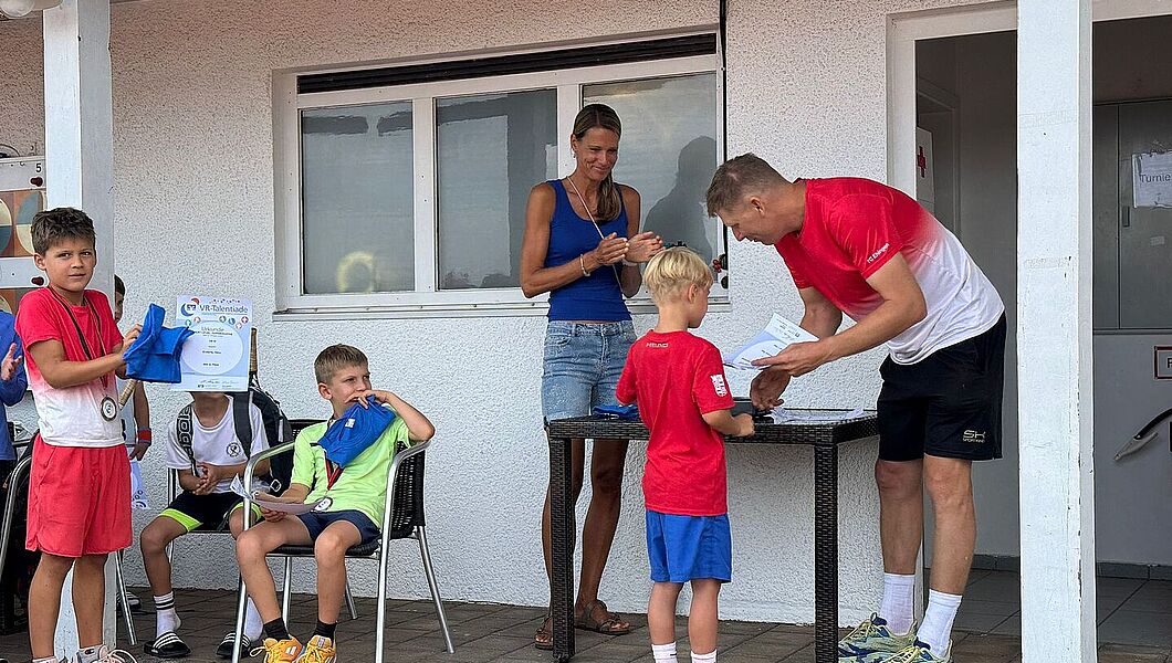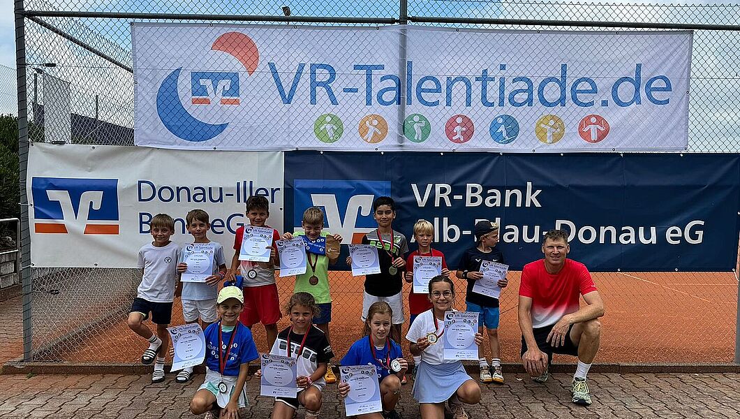 Der TCE wurde hier von der Donau Iller Bank und der VR-Bank ALB-Blau-Donau unterstützt und der Turnierleiter Jiri Heinisch bedankt sich mit der abschließenden Siegerehrung bei den teilnehmenden Kindern für die tollen Leistungen. Mit der VR-Talentiade leisten die Volksbanken Raiffeisenbanken einen wichtigen Beitrag zur Talentförderung“.