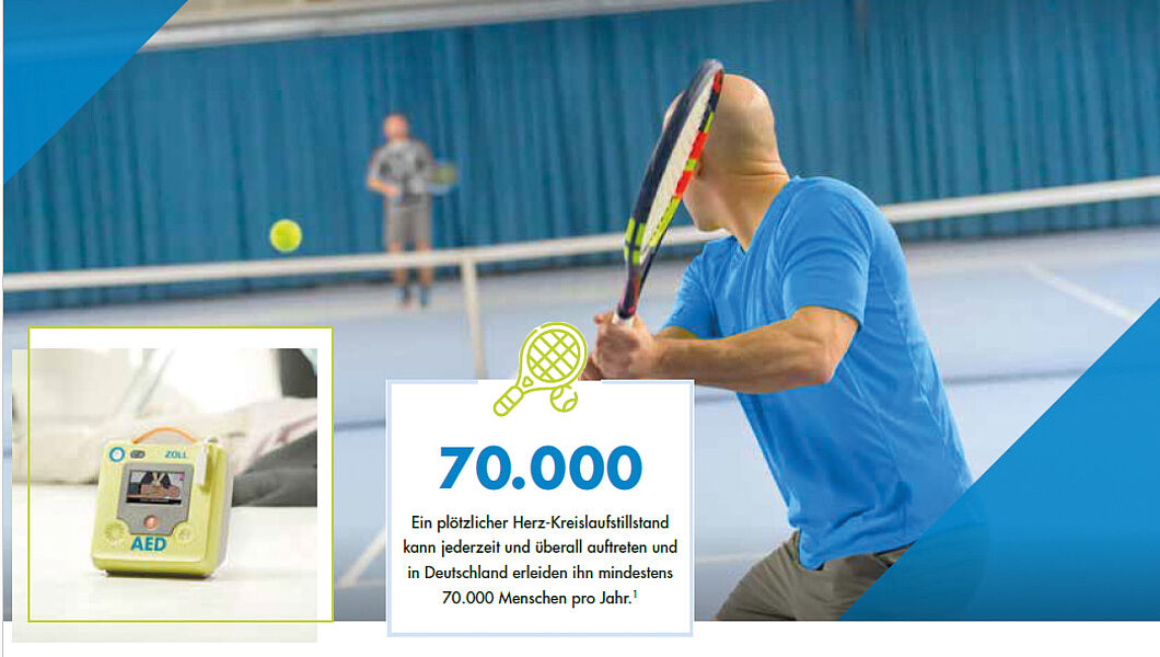 Ein Sommertag. Zwei Spieler auf dem Platz. Ein spannender Satz, intensive Ballwechsel – und dann bricht plötzlich einer zusammen. Ein Moment, den niemand je vergessen wird. Ein plötzlicher Herz-Kreislauf-Stillstand trifft oft ohne Vorwarnung – und er kann jeden treffen.