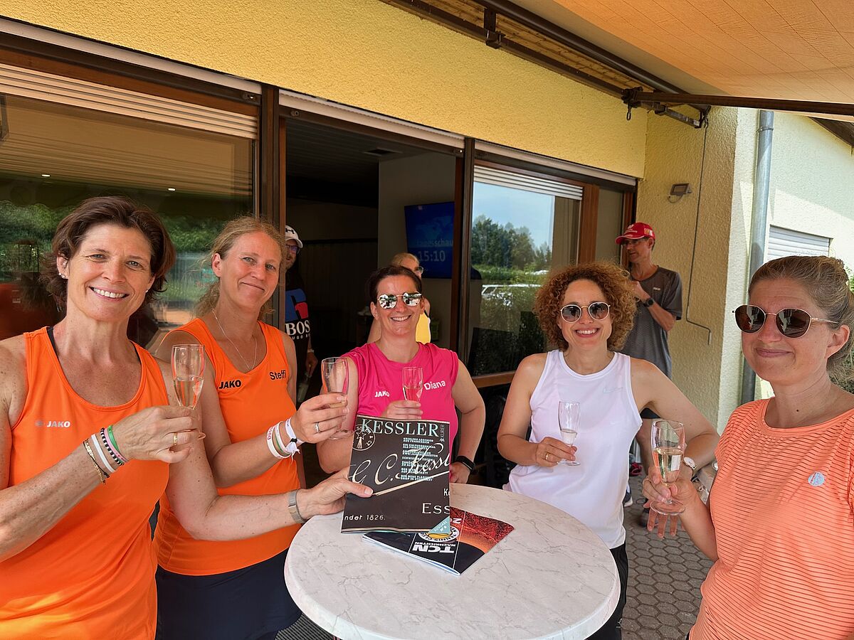 Am Samstag, 27.07.2024 fand der KESSLER Cup für den Bezirk E erstmalig auf der Anlage des TC Nehren statt. Insgesamt 17 Doppel-Paarungen (12 Damen und 5 Herren) hatten sich angemeldet. Ausgestattet mit einem wunderbaren Antrittsgeschenk von der Firma KESSLER starteten alle Mannschaften bereits um 09:30 Uhr. Das ein oder andere Team genoss hierbei bereits das erste Schlückchen Sekt.