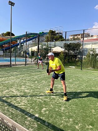 Am Mittwochnachmittag wurden die Teilnehmer:innen mit einer wohlverdienten Spielpause belohnt und konnten relaxen oder die schöne Umgebung genießen. Unter anderem wurde aber auch die Zeit genutzt, um die Trendsportart Padel ausgiebig zu testen. Andere nutzten die Möglichkeit zum Einkaufen in Side oder den Besuch im nahegelegenen Ali Bey Club Manvagat. Dort fand im Rahmen der Int. Wilson Masters Open ein Showmatch mit Philipp Kohlschreiber statt!