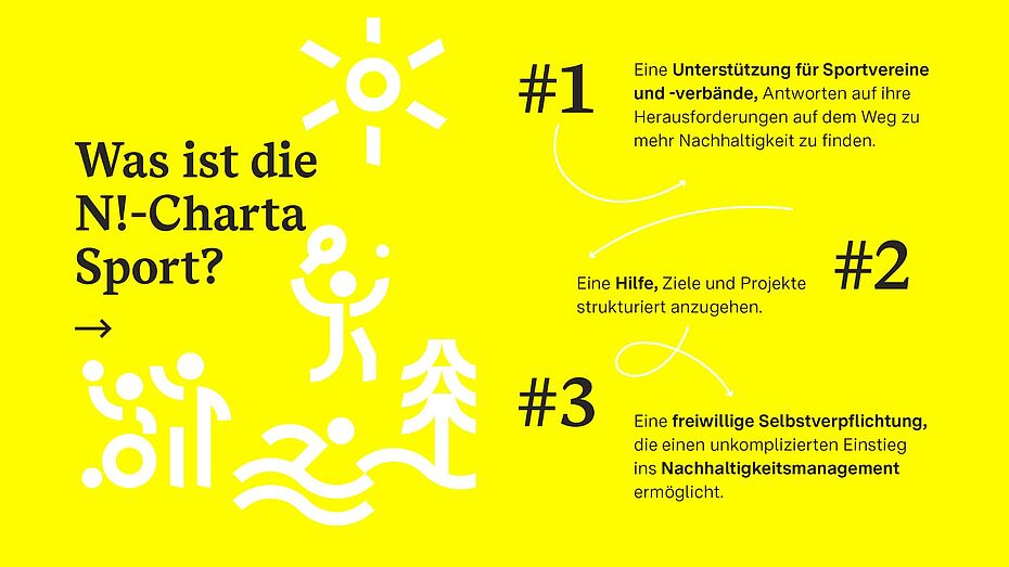 Die N!-Charta Sport ist eine freiwillige Selbstverpflichtung zu mehr Nachhaltigkeit im Sport, die einen praktischen Leitfaden für einen einfachen Einstieg in das Nachhaltigkeitsmanagement für alle Sportvereine und -verbände in Baden-Württemberg bietet.