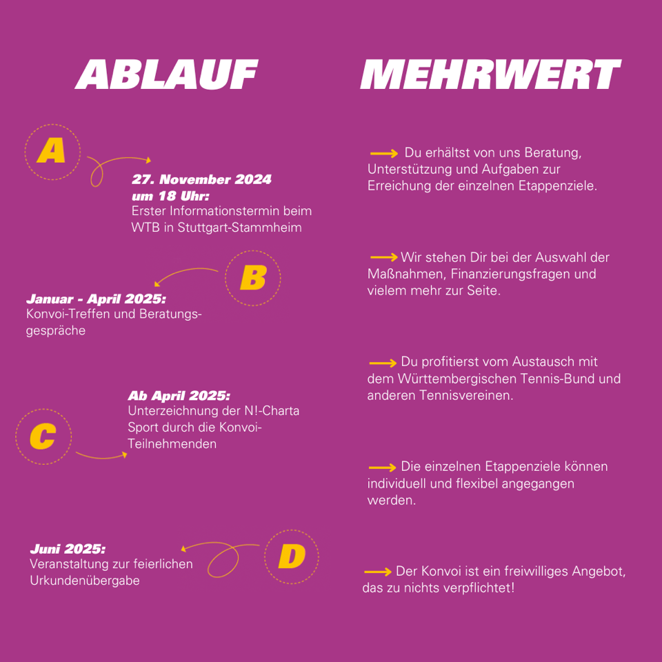 Erstmals ziehen der Württembergische Tennis-Bund und der Badische Tennisverband mit den Verantwortlichen der N!-Charta Sport an einem Strang: Der Konvoi startet in eine neue Runde – mit überarbeitetem Konzept, klarer Struktur und echtem Mehrwert für alle Vereine in Baden-Württemberg.