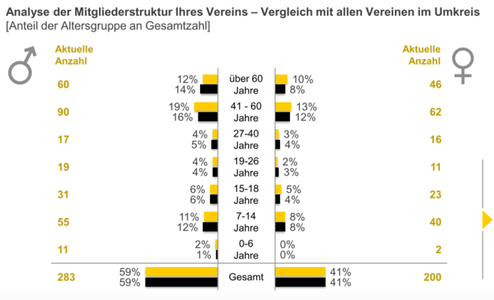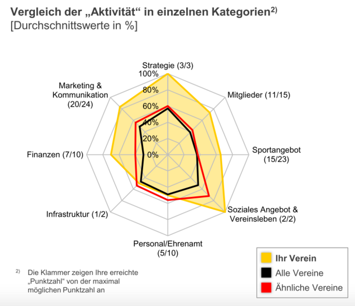 Zur Vorbereitung können Sie den kompletten Fragebogen zur Detail- Analyse einsehen. Jeder analysierte Verein wird mittels individuell berechneter Kennzahlen mit allen Vereinen sowie mit ähnlich strukturierten Vereinen verglichen.