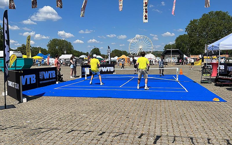 Der WTB wird mit einem Steet-Tennis-Court, einem Infostand, einer Chillout Area und einer Tennis-to-Go-Wand am Start sein und Interessierte mit Pickleball bekannt machen.
