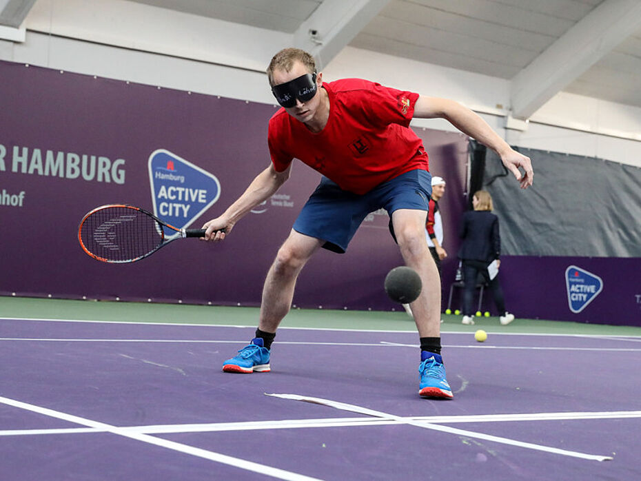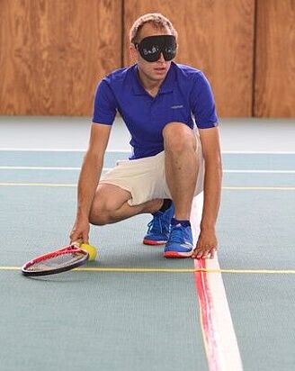 Blinden- und Sehbehindertentennis funktioniert mit rasselndem Ball und fühlbaren Linien. Ansonsten ist es von den Regeln, Schlägern oder Feldern extrem nah am Tennis der Sehenden.