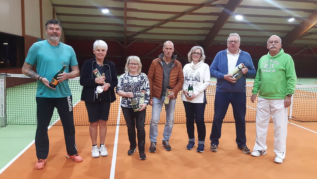 Die Herrenwertung konnte „Mausi“ Klaus Renz vom TA TSV Kleinglattbach vor Uwe Händle vom TC Korb und Michael Roller vom TC Enzklösterle gewinnen. Die 3 Erstplazierten erhielten jeweils Sachpreise. Gegen 16:30 Uhr ging ein toller Turniertag zu Ende, bei dem sich viele bereits für weitere HTOT’s verabredet haben, so auch für das HTOT von David King in der gleichen Halle in Schwieberdingen am 10.04.22. Die Resonanz der Teilnehmerinnen und Teilnehmer lässt auf eine hohe Zufriedenheit mit dem Turnier der kleinen TA TSV Hochdorf/Enz schließen. Am 2.07.22 soll dort das 10. Jubiläums-HTOT stattfinden.