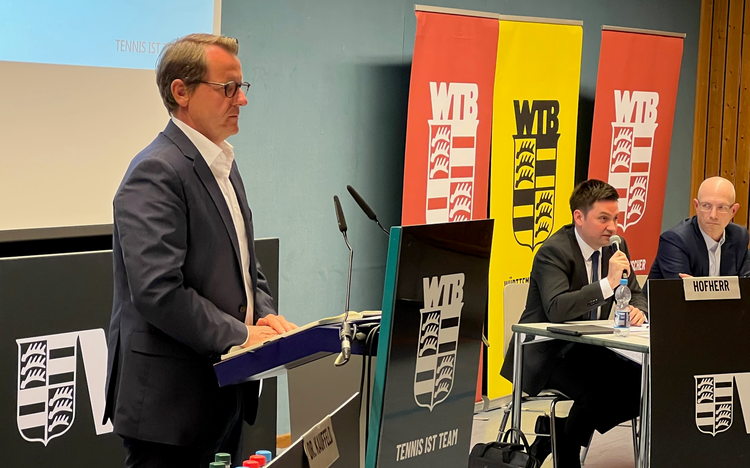 In seinem Geschäftsbericht blickte Präsident Stefan Hofherr auf ein wiederum arbeitsreiches, herausforderndes und nicht einfaches Jahr zurück, das durch eine anhaltend kräftezehrende Aufarbeitung des Veruntreuungsskandals geprägt war. Immerhin war nach der schwierigen Coronazeit ein nahezu uneingeschränkter Tennis-, Verbandsspiel- und Turnierbetrieb wieder möglich gewesen. Grund zu einem „gedämpften Optimismus“ gibt dem WTB die Gesamtmitgliederentwicklung in den knapp 1.000 württembergischen Tennisvereinen. Deren Mitgliederzahlen stiegen um 3,2 Prozent auf 169.211 an, erfreulicherweise überproportional bei den Jugendlichen. Es gelte also, zukünftig strukturell die Weichen zu stellen, neue Mitglieder für den Tennissport zu begeistern und diese dauerhaft zu halten. Weiter berichtete Hofherr über das 2022 neu aufgestellte Ressort Sportentwicklung unter Leitung von Vize-Präsident Dr. Christoph Winkler, welches personell bereits verstärkt worden ist.