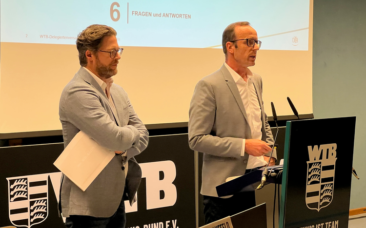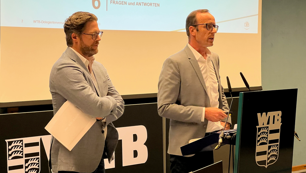 Sehr am Herzen, so der Präsident, liege ihm die größte Strukturreform des WTB der letzten Jahre. Ziel sei es, das Ehrenamt zu entlasten, den Verband effizient für die Zukunft aufzustellen und das WTB-Dienstleistungsangebot wahrnehmbar für alle Mitglieder im Verband zu erweitern. Hierzu galt es, im Verlauf der Versammlung eine umfassende Satzungsänderung zu beschließen. Eine Arbeitsgruppe, bestehend aus Vertretern aus Präsidium, Bezirken, Vereinen und Hauptamt, hatte sich ein Dreivierteljahr intensiv mit dieser Thematik befasst. Der WTB verspricht sich mit der neuen Satzung mehr Flexibilität – weg von der alten „starren“ Struktur, hin zu einer agileren Zusammenarbeit – und hofft, damit gut für die Zukunft aufgestellt zu sein. Dies quittierten die Delegierten mit einer 100-prozentigen Zustimmung. Die vorgeschlagenen Änderungen der Wettspielordnung in Tagesordnungspunkt 8 trug Tobias Beuttler, Bereichsleiter für das Ressort III im Hauptamt, vor. Mit nur einer Gegenstimme und ohne Enthaltungen wurden sie angenommen und werden zum 1. Oktober 2023 gültig.
