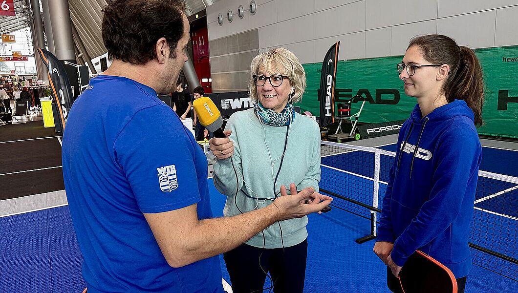 Auch Daniel Räuchle von Regio TV wollte Pickleball live erleben. Er besuchte den WTB Stand auf der Messe und hatte einige Fragen über die neue Trendsportart dabei. Klaus Berner (WTB-Vorstand), Micha Wennagel (Cheftrainer Sportentwicklung) und Rebecca Bäuerle (Trendsportbeauftragte beim WTB) standen ihm Rede und Antwort. Der Beitrag ist jederzeit in der Mediathek auf regio-tv.de verfügbar.