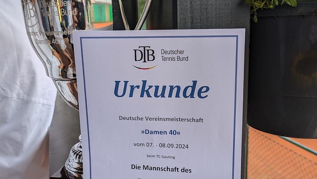 Am vergangenen Sonntag um 16:03 Uhr war die Sensation perfekt: Das Doppel 2 mit Anke Wurst und Sibylle Elsland holte mit 6:2 6:3 den entscheidenden 5. Punkt im Finale der Deutschen Vereinsmeisterschaften gegen die Titelverteidiger und favorisierten Gegnerinnen des TC Bredeney aus Essen. Zuletzt hat die Mannschaft 2021 den begehrten Silberpokal geholt, damals sogar auf unserer Anlage. Dieses Mal, auf der Anlage des bayrischen TC Gauting, stand es bereits nach den ersten Einzeln 3:0,