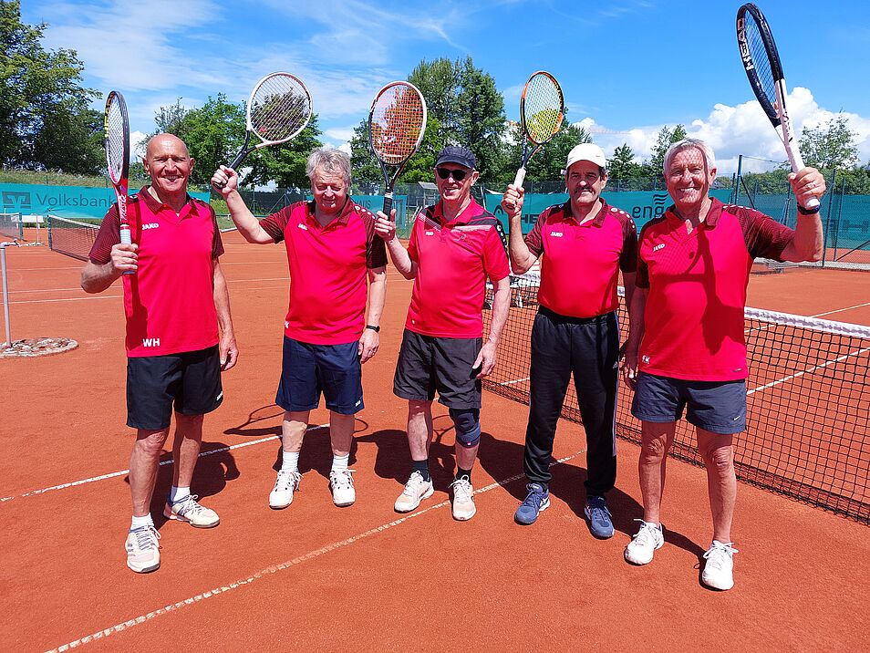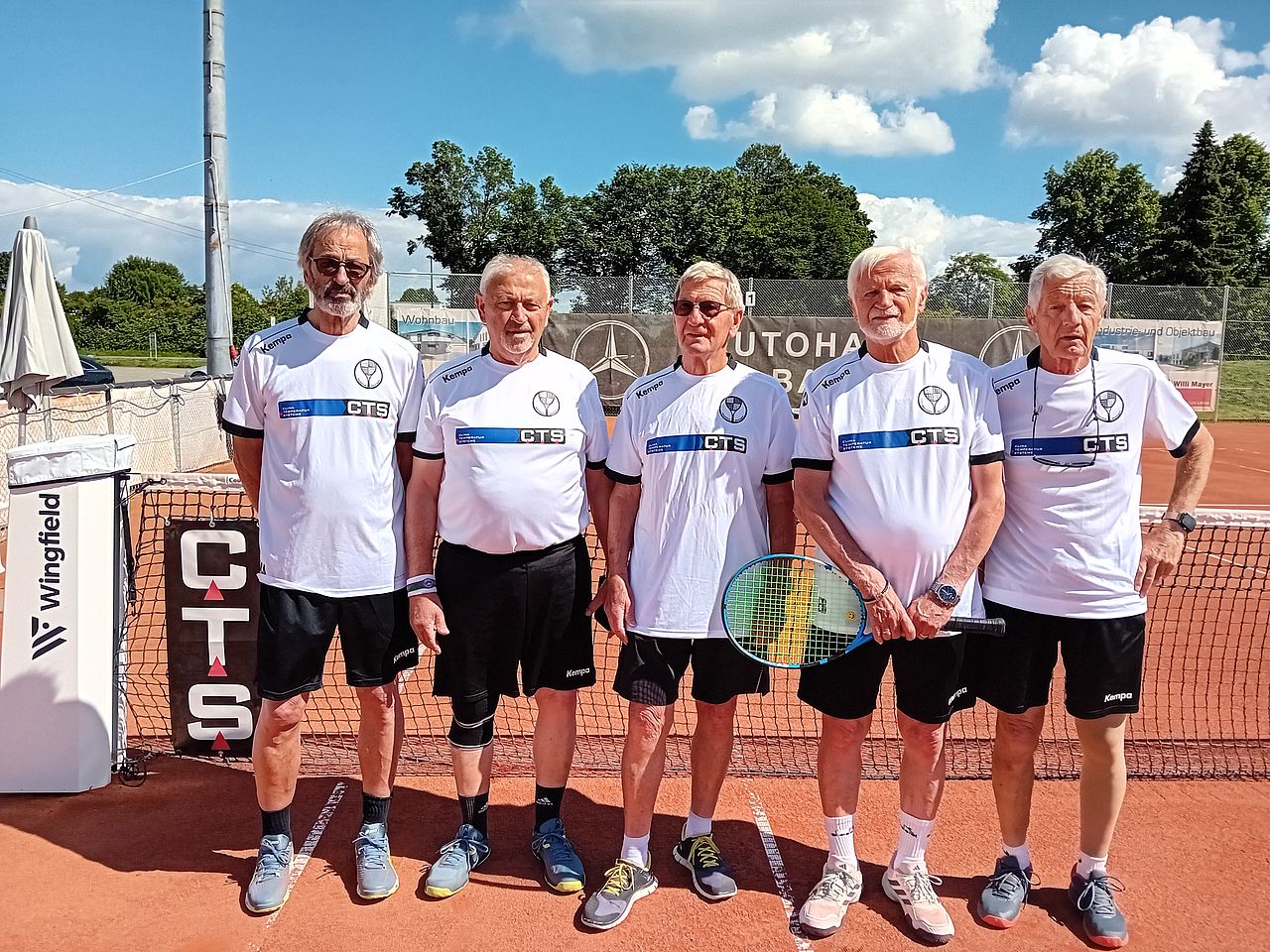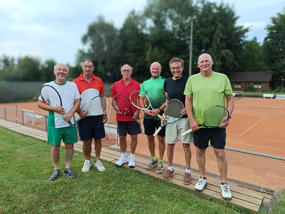 Großartiger Aufstieg der Senioren 70/1 des TC Langenargen: 2021 als H 65 in die Württembergstaffel aufgestiegen. 2022 verletzungsbedingt wieder abgestiegen. 2023 ohne Niederklage, jetzt als H 70 wieder in die Württembergstaffel aufgestiegen. 2024 ohne Niederlage Meister der Gruppe 78 der Württembergstaffel geworden. Da der Sieger der Gruppe 77 (Backnang) auf das Entscheidungsspiel um den Aufstieg verzichtete, sind die TCL-Senioren völlig überraschend in die Südwestliga Gruppe Süd aufgestiegen. In der zweithöchsten Liga Deutschlands hat noch nie zuvor eine Mannschaft des TC Langenargen gespielt. Insofern ist dieser Erfolg sowohl für die Mannschaft als auch für den Verein ein Grund stolz zu sein.