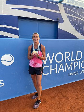 Die Spielerin vom TC Bernhausen ist bei der Weltmeisterschaft der Young Seniors im kroatischen Umag die erfolgreichste Athletin. Medaillen gab es auch für die württembergischen Athleten Stefanie Kolar, Susi Fortun Lohrmann (beide TC Leonberg), Sylva Hahn (TA SV Böblingen) und Toby Mitchell (TC Sigmaringen). Bei den Senior*innen-Meisterschaften gab es ebenfalls Goldmedaillen für Damen aus Württemberg.