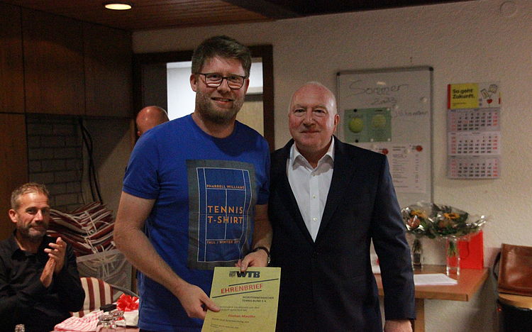 Die WTB-Ehrennadel "Bronze-versilbert" erhielt Michael Greidenweis. Er war acht Jahre lang Breitensportwart, ehe er im Jahr 2015 das Amt des 2. Vorsitzenden übernahm.