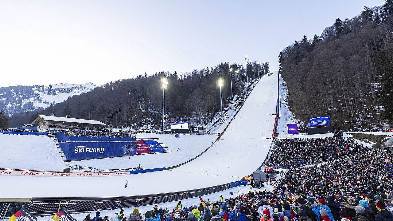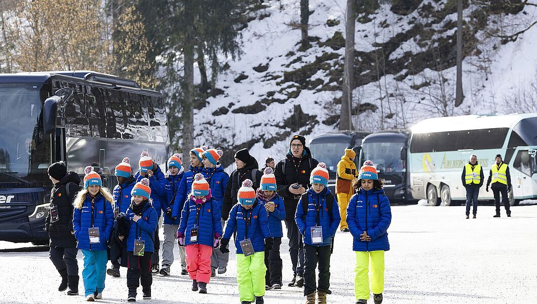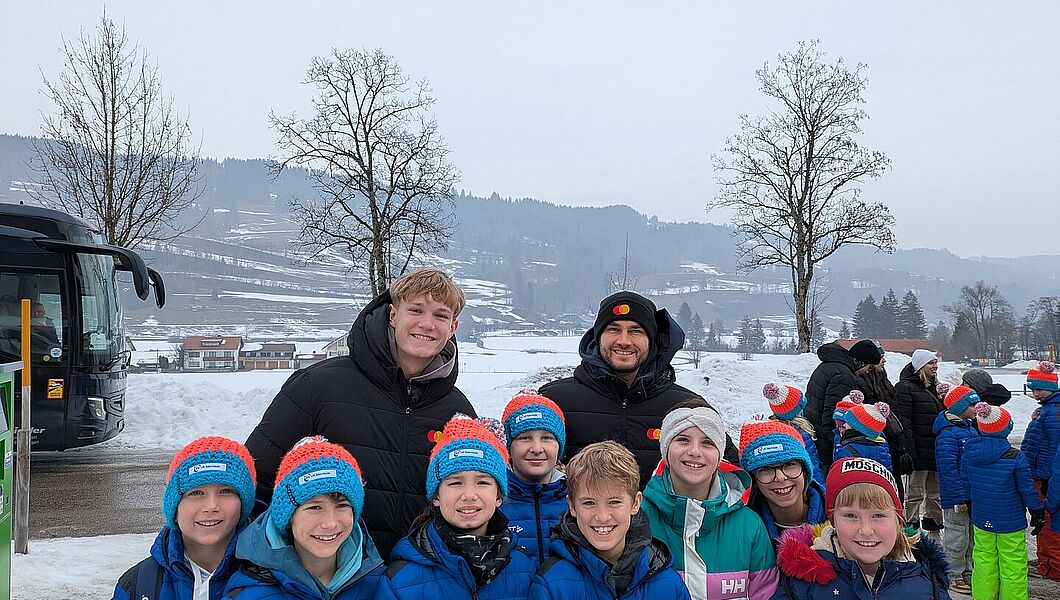 Am Freitagnachmittag begann für die VR-Talentiade-Kinder der Start in ein erlebnisreiches Wochenende (23. - 25. Januar) im Allgäu. Die gemeinsame Fahrt ging zur Unterkunft nach Sonthofen, wo der erste Tag bei einem gemeinsamen Abendessen seinen stimmungsvollen Abschluss fand. Der Samstag hielt gleich mehrere Höhepunkte bereit. Zunächst sorgte ein Ausflug in die Eishalle nach Oberstdorf für sportlichen Spaß. Anschließend wartete an der Heini-Klopfer-Skiflugschanze ein ganz besonderes Erlebnis: Im Rahmen der Skiflug-WM wurden die VR-Talentiade-Kinder feierlich geehrt – der unbestrittene Höhepunkt der Reise.