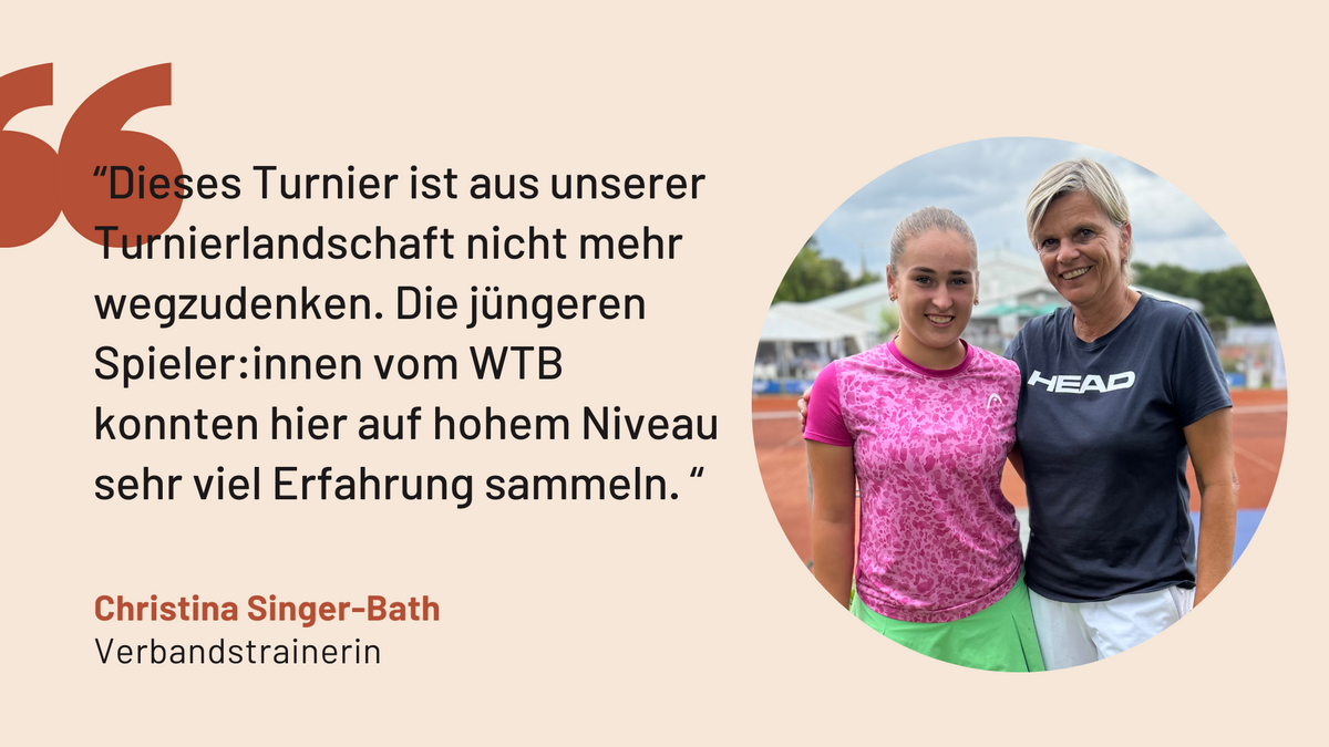 Christina Singer-Bath war als WTB-Trainerin vor Ort dabei und betreute die WTB-Spieler:innen. Sie hob hervor, dass der Baublies Jugend Cup das höchstdotierte ITF-Turnier in der Region sei und bereits seit vielen Jahren durch eine hervorragende Organisation überzeuge.