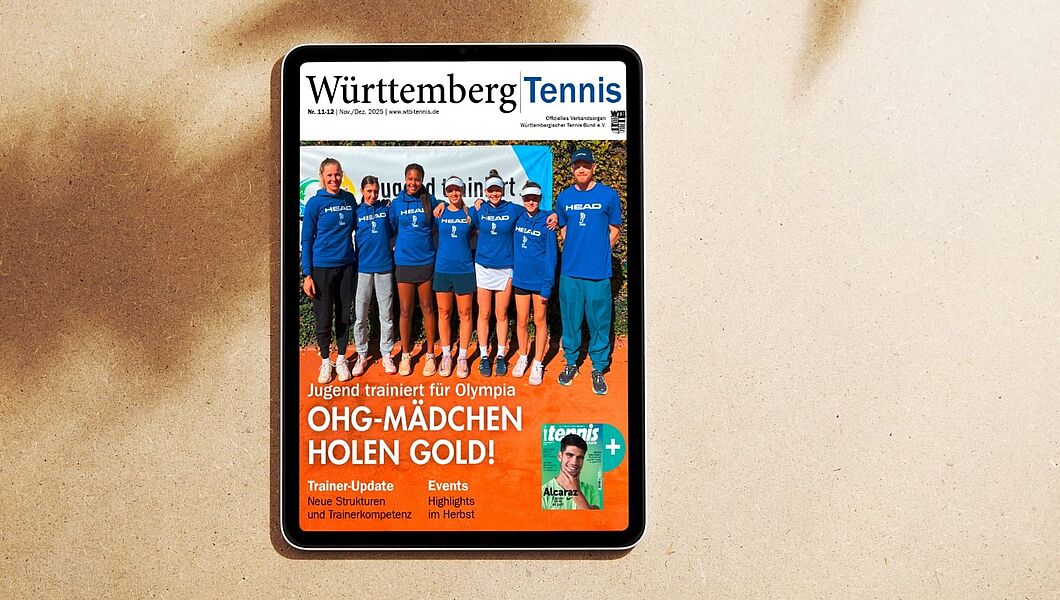 Die November/Dezember-Ausgabe unseres Verbandsmagazins Württemberg Tennis zeigt, wie vielseitig sich der Tennissport in Württemberg präsentiert. Von spannenden Meisterschaften über neue Impulse in der Talentförderung bis hin zu aufstrebenden Trendsportarten – der WTB blickt auf ereignisreiche Wochen zurück und freut sich zugleich auf impulsreiche Wochen im Jahresabschluss.