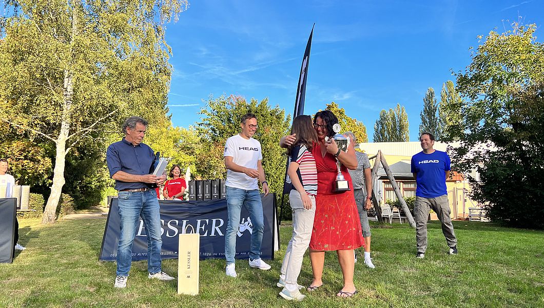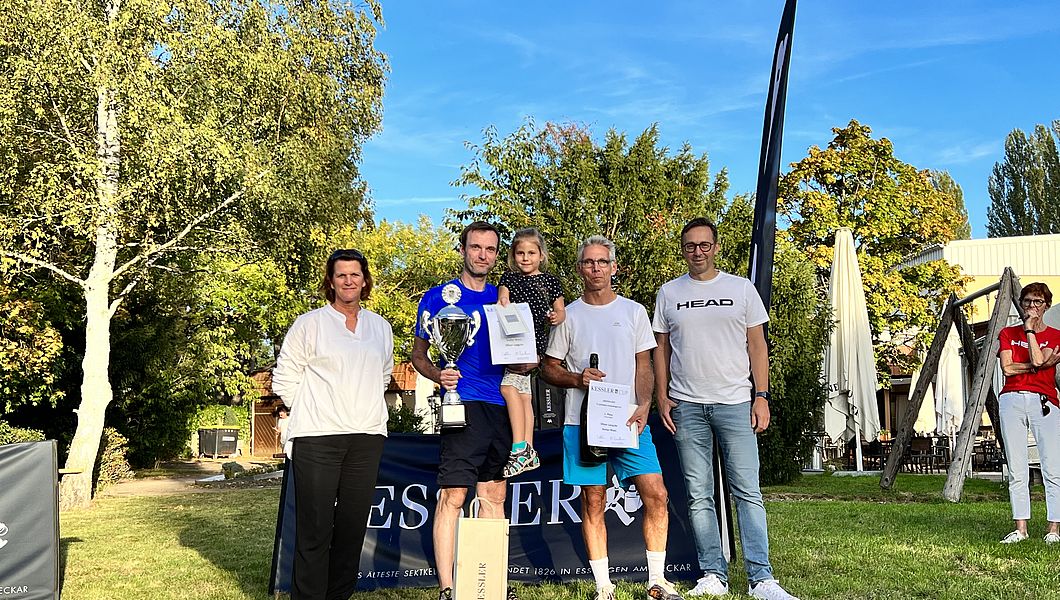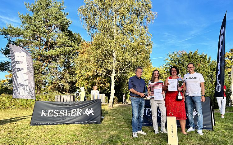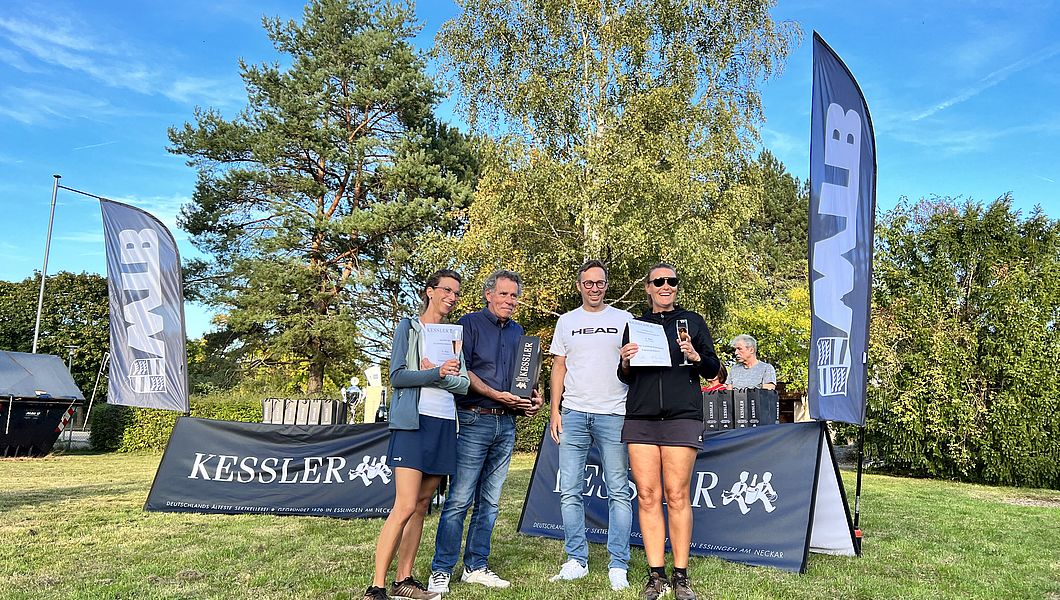 Die Siegerehrung wurde vorgenommen von KESSLER Markenbotschafter Achim Silberhorn und WTB-Vizepräsident Dr. Christoph Winkler. Christoph Winkler betonte noch einmal, wie wichtig die Kooperation mit der KESSLER Sekt GmbH & Co. KG für die Turnierserie und den WTB ist. Alle Teilnehmerinnen und Teilnehmer waren, von den zur Verfügung gestellten Preisen, begeistert. Der WTB dankt der KESSLER Sekt GmbH & Co. KG und freut sich auf die Saison 2024 mit den KESSLER-CUPS und dem KESSLER-MASTERS.