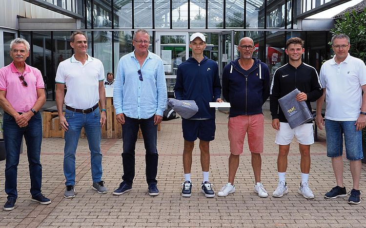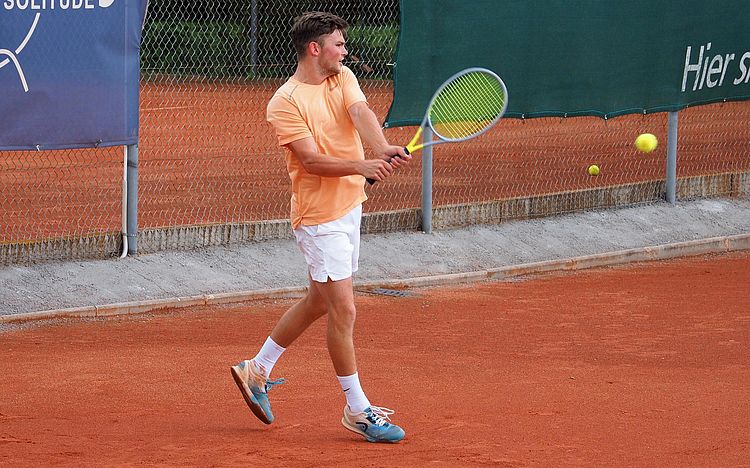 Besser sah es wieder am Sonntag aus. Bei schönstem Sommerwetter wurden die beiden Halbfinals ausgetragen, wobei der an Nr. 3 gesetzte Amar Tahirovic (DTB 603) vom TSC Renningen seinem Gegner Amine Hamouti (LK 2,9) vom TC First-Line-Academy Murr mit 6:0, 6:1 keine Chance ließ. Spannender ging es im zweiten Halbfinale zu: hier konnte sich Yannick Zeitvogel (LK 2,1) vom TEV R.W. Fellbach gegen den an Nr. 2 gesetzten Philipp Leithold (DTB 582) vom TC Metzingen mit 6:3, 4:6 und 10:7 erst im Match-Tiebreak durchsetzen.