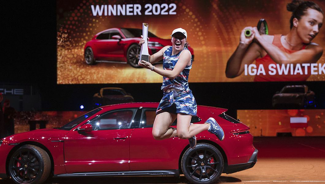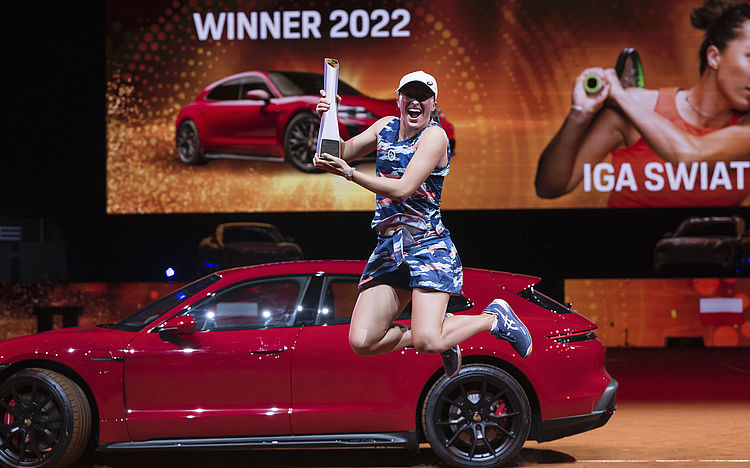 Iga Swiatek ist die neue Tennis-Königin von Stuttgart! Die 20-jährige Weltranglistenerste schlug im Endspiel des 45. Porsche Tennis Grand Prix die Vorjahresfinalistin Aryna Sabalenka souverän mit 6:2, 6:2 und sicherte sich damit einen Porsche Taycan GTS Sport Turismo. Vor 4.400 Zuschauern in der ausverkauften Porsche-Arena ließ die Polin, die zum ersten Mal beim Stuttgarter Traditionsturnier aufschlug, zu keiner Sekunde Zweifel an ihrem Erfolg aufkommen. Trotz des kräftezehrenden Halbfinales vom Vortag, das mehr als drei Stunden gedauert hatte, spielte sie gegen die Nummer 4 der Weltrangliste von Anfang an kraftvoll und mutig und verwandelte nach 1:24 Stunden ihren dritten Matchball.