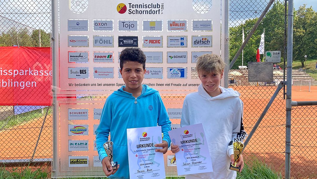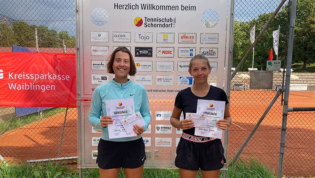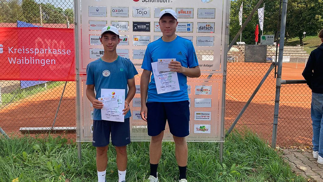 Daniel Stepanenko (TC Ehingen/Donau) und die Schorndorferin Julica Grass (TC Schorndorf) gewinnen den mit 1.000 Euro dotierten Nachwuchscup in Schorndorf. Nelli Marie Bulkow (TC Augsburg Siebentisch) und Oskar Henning (TC Heidenheim) belegen Platz zwei.