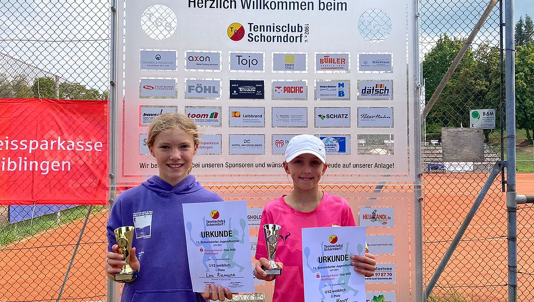 Die Gewinnerin der U12-Juniorinnen Konkurrenz ist Lea Riemann vom TK Ulm. Im Endspiel gewann sie mit 6:4 und 6:2. Der Vizetitel geht Anna Knorr vom TK Bietigheim. Die Schorndorferinnen Jana Rilling und Elena Del Hierro Del Rey verloren in Runde eins, Matilda Mangold in Runde zwei.