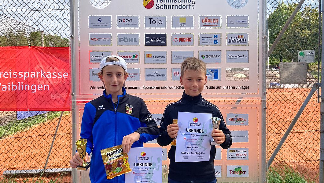 Aurelio Erlenmayer (TC Bernhausen) ist Sieger bei den U12-Junioren und war an Position vier gesetzt. Im Finale setzte er sich mit 6:3 und 6:4 gegen William Weinberger (TK Ulm) durch. Der Schorndorfer Ole Beisswenger verlor im Viertelfinale gegen Weinberger. Marcel Kania (TC Schorndorf) musste in Runde eins bei einem Stand vom 7:6 und 3:2 aufgeben.