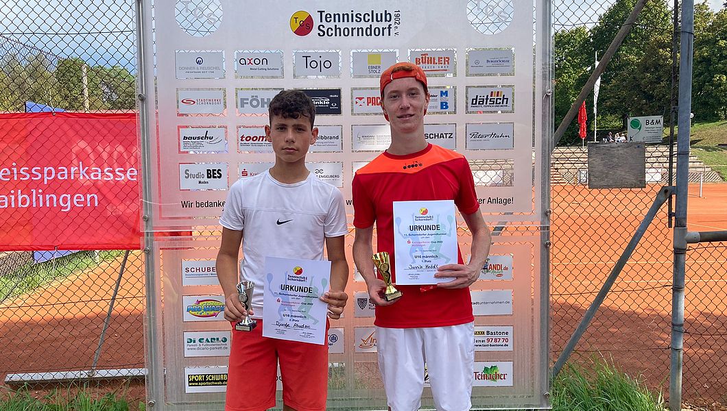 Jannik Knödl (TC Waiblingen) siegt bei den Junioren U16. Als Topgesetzter spielte er sich souverän ins Finale. Hier siegte er mit 6:1 und 6:1 gegen Djordje Abadzic vom TC Schnait. Knödl hatte in der Vorschlussrunde Jannick Feifer (TC Lichtenwald) geschlagen. Abadzic gewann im Halbfinale gegen Vincent Eckl vom TC Waiblingen. Von den Schorndorfer Teilnehmern schafften es Paul Kappes, Maik-Valentin Schatz und Henri Schwank ins Viertelfinale.