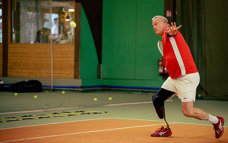 „Auch wenn ich die Sportart sensationell finde, kam für mich nie in Frage, Tennis im Sportrollstuhl zu spielen. Ich laufe ja auch im Alltag mit Prothese. Das Trainingswochenende in Starnberg hat mir wahnsinnig viel Energie gegeben – die perfekte Mischung aus intensivem Training und wahnsinnig viel Spaß in einer tollen Community“, resümiert Olaf Hänsel. Der 1,90 Meter große Marburger verlor sein rechtes Bein und fand dann seinen Weg mit Sportprothese auf den Tennisplatz. Er startet in der Kategorie PST 2 – eine von vier Startklassen im Para Standing Tennis, die sich nach den körperlichen Voraussetzungen und der Mobilität der Teilnehmenden richten.