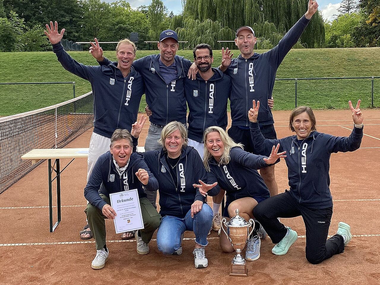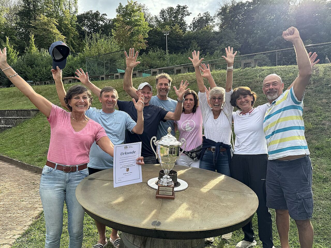 Dort wartete Hessen, ebenfalls mit viel Erfahrung und Qualität ausgestattet. Erinnerungen wurden wach: 2022 hatte man trotz 4:2 nach den Einzeln alle Doppel verloren. Doch diesmal zeigte das WTB-Team Nervenstärke. Wieder stand es 4:2, wieder wurde es spannend. Als das Damendoppel den Matchball verwandelte, war der Jubel groß. Endstand: 5:4. „Sektdusche, Siegerehrung, glückliche Gesichter – wir hätten uns den Heimweg nicht schöner vorstellen können“, fasste Mannschaftsführerin Stefanie Jäger zusammen.