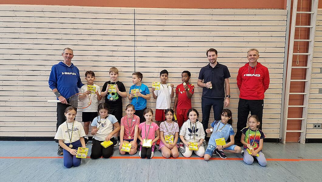 Am Ende des Videodrehtages gab es für die sehr engagiert und konzentriert agierenden Schülerinnen und Schüler zur Belohnung eine Goldmedaille und ein Tennis-Memo-Spiel. „Wann können wir wieder Tennis spielen?“ Diese Frage der teilnehmenden Kinder wird nun von auch der Schulleiterin Tanja Hackenberg zu beantworten sein, wenn es um die Möglichkeit zur Einrichtung einer Tennis-AG an ihrer Schule geht.