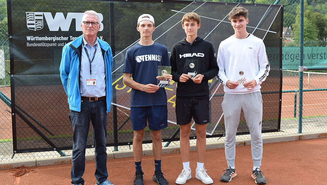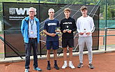 Wesentlich mehr Spannung war dann im Herrenfeld. Der Topgesetzte Amar Tahirovic, TSC Renningen, spielte sich ganz souverän ins Finale und fertigte im Halbfinale Lokalmatador Niklas Plath, der bis dahin ein hervorragendes Turnier gespielt hatte, unter anderem mit einem hart umkämpften 6:3,7:6 gegen den Ettlinger Nicolas Bub (4), mit der Höchststrafe ab. In der unteren Hälfte trafen, wie erwartet, im Halbfinale Aaron Funk (3) aus Renningen und Marc Christmann (2), TC Wolfsberg Pforzheim aufeinander. Beide lieferten sich auf dem schnellen Teppichboden zwei Stunden lang ein Match auf höchstem Niveau und einem am Ende doch klaren 6:3,2:6,10:2 für Funk. Das Finale, das dann wieder bei optimalen Bedingungen im Freien ausgetragen werden konnte, zeigte Sandplatz-tennis mit allen Variationen und auch den entsprechenden Emotionen.Nachdem sich Tahirovic im 1.Satz knapp mit 6:4 durchsetzten konnte, führte Funk bis zum 5:4 und alles schien auf einen entscheidenden Match-Tie-Break hinauszulaufen. Tahirovic erhöhte aber dann den Druck, ging mehr Risiko und sicherte sich mit 6:4,7:5 knapp, aber verdient den Titel.